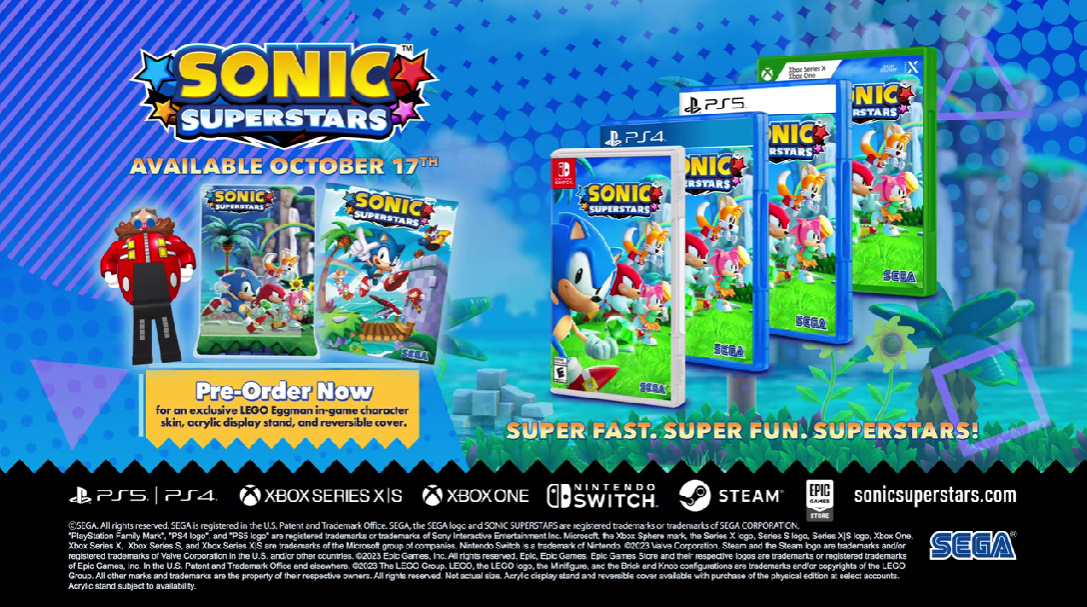 SEGA 於今(23)日德國科隆電玩展 Gamescom 2023 活動中宣布,預定在 PC/PS5/PS4/Xbox Series X|S/Xbox One/Nintendo Switch 等平台上推出的《索尼克》系列動作新作《索尼克 超級巨星》(Sonic Superstars)將在 10 月 17 日發售,即日起開放預購。