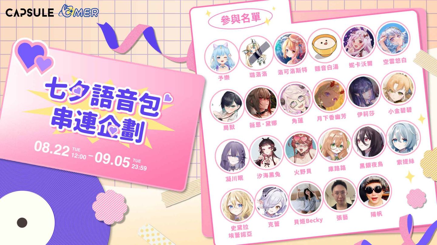 為迎接一年一度的七夕,曾舉辦和 hololive 官方聯合舉辦「hololive EN cafe」 的 CAPSULE 邀請到台灣各大人氣 VTuber 攜手舉辦「七夕語音包特別企劃」,讓粉絲們都能收到自己喜歡的 VTuber 的真情表白,再也不用孤單度過七夕!