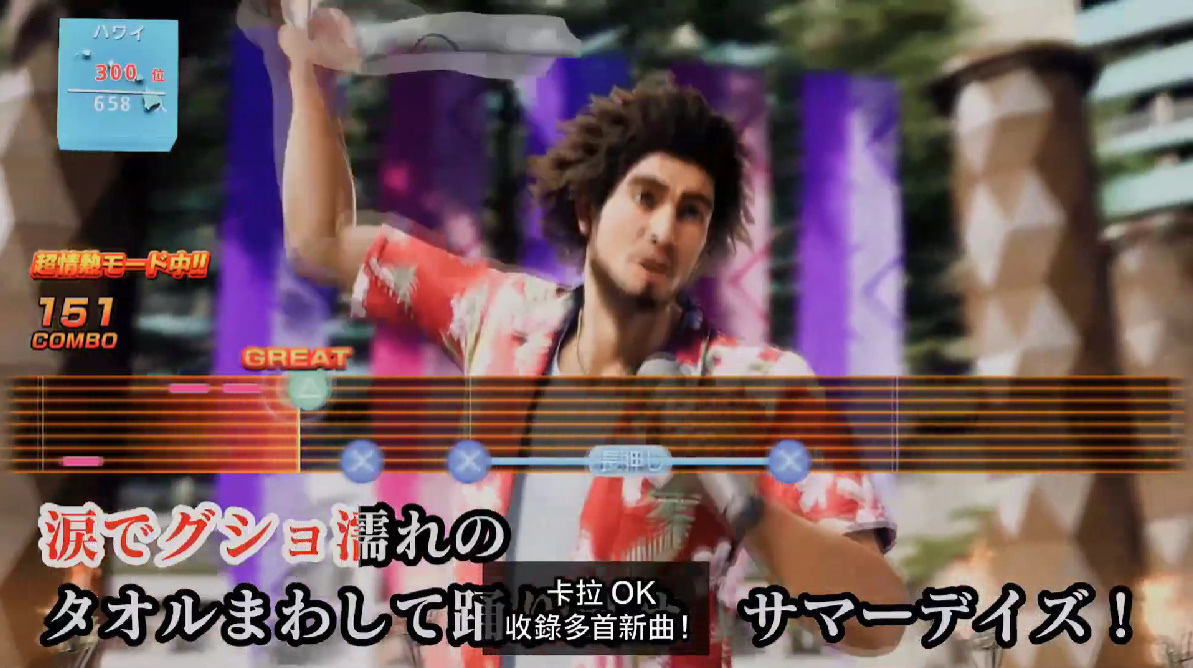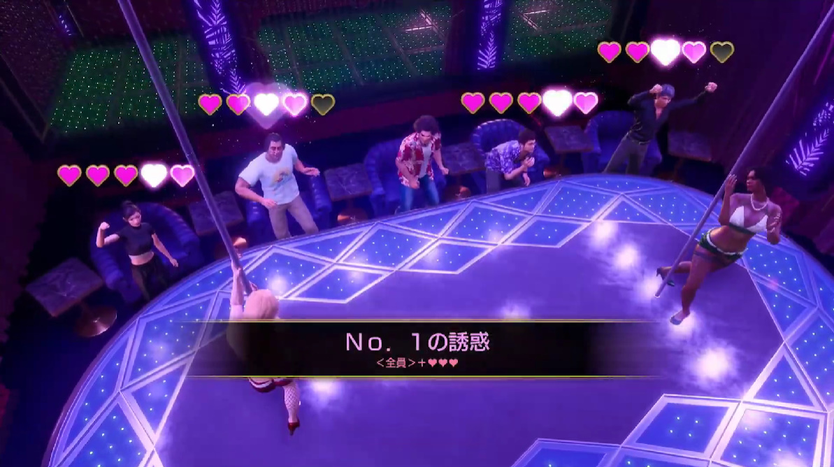 此外,城鎮中還會有許多令人流連忘返的娛樂場所,例如像是鋼管舞「No.1 的誘惑」等等,在卡拉OK 方面也收錄多首新曲,還會有《Get Bass》與《Spikeout》等玩家熟悉的小遊戲登場,為玩家們帶來豐富的遊戲陣容體驗。