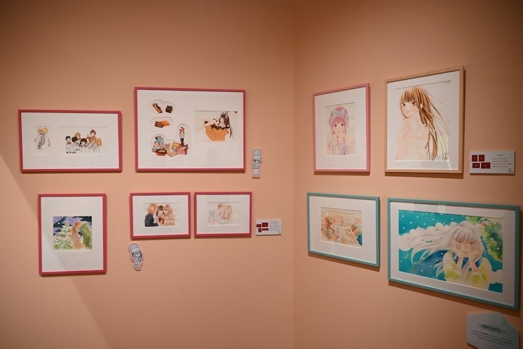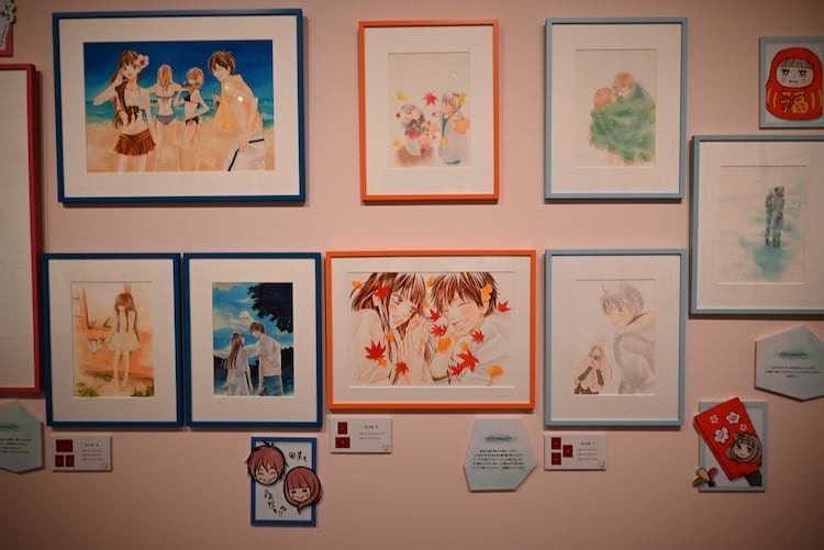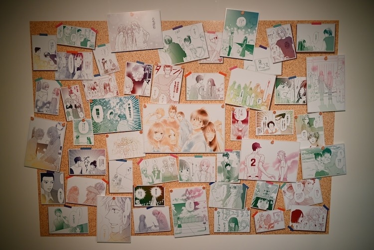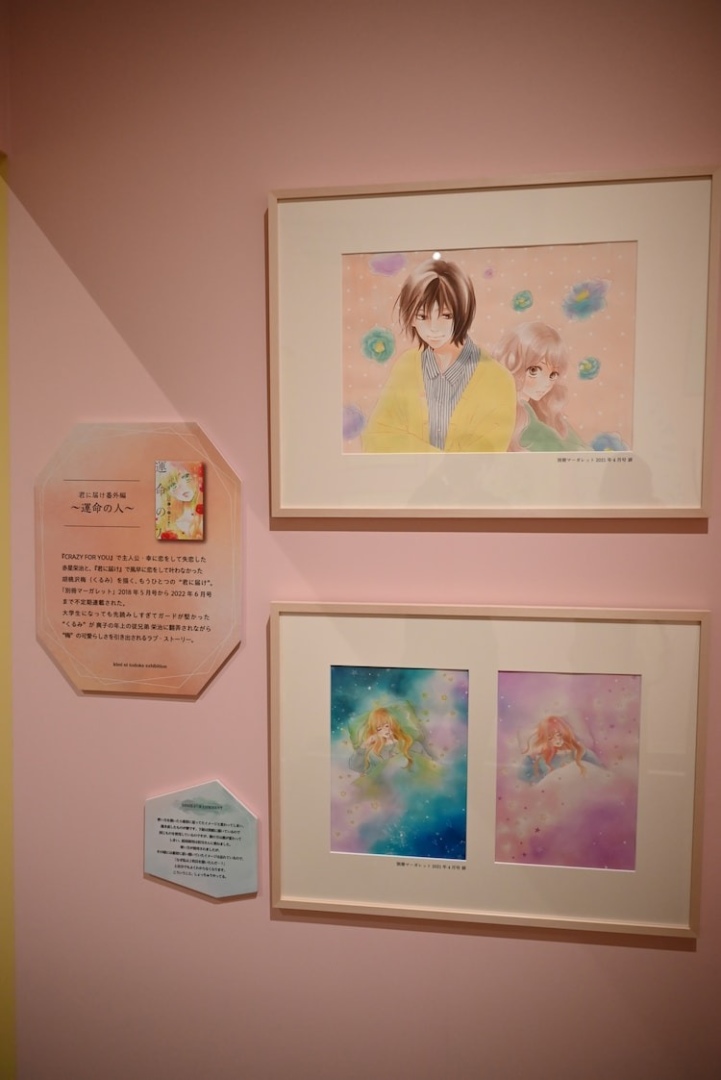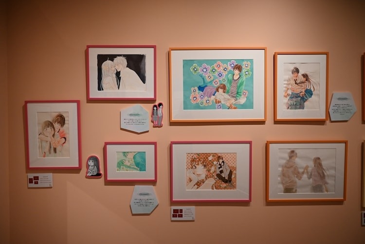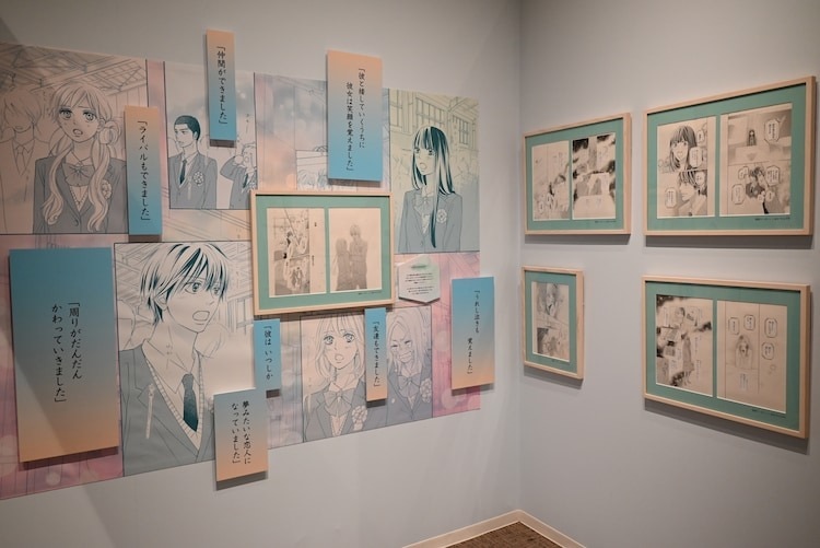 會場中還展示椎名老師工作時使用的工具、別冊瑪格麗特的附錄、送給讀者的週邊禮物等。第五章「連接起來的〝喜歡〞」則展出相關作品《CRAZY FOR YOU》、《只想告訴你外傳~命運之人~》的原畫。在最後所裝飾的也是為了本展而特別繪製的新插畫,則是爽子與風早的某一幕,除了這張新插畫外,本展大多數展品都是可以拍照的,所以很在意新插畫的粉絲務必親自走一遭!