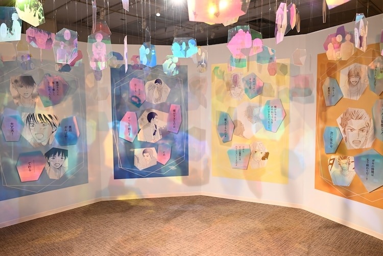 進入會場第一眼就會看到的是將展示物懸掛起來、還加工得閃閃發亮的「〝喜歡〞的三稜鏡」區,可以感受到許多〝喜歡〞的心情共鳴、瞬息萬變的青春日子。設置許多垂掛布幕的區域,則以每個鼓勵爽子的角色所說出的台詞,描述爽子對風早傳遞心情的過程。