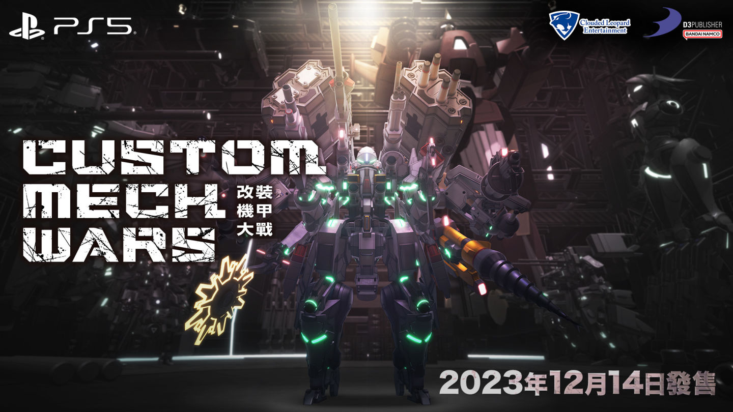 雲豹娛樂宣布,日本 D3 Publisher 預定在 PS5/Steam 推出的魔改造機甲動作射擊遊戲《Custom Mech Wars 改裝機甲大戰》(カスタムメックウォーズ),將由雲豹娛樂推出 PS5 亞洲在地化版本,並會和日文版同步於 2023 年 12 月 14 日(四)推出。
