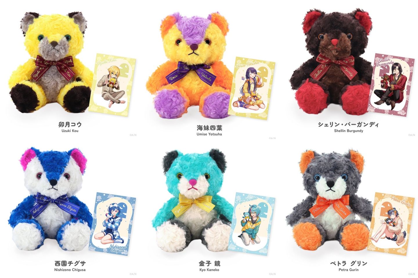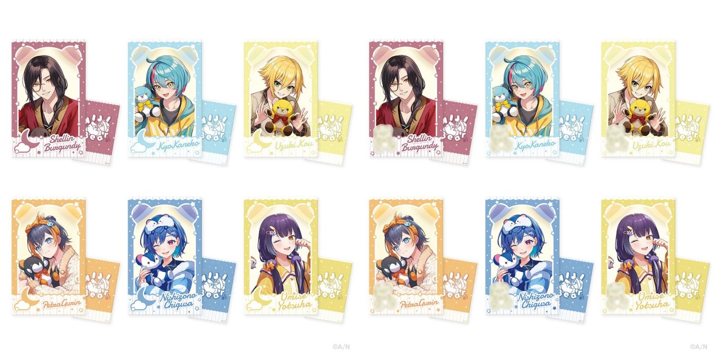 本系列主題周邊將以彩虹社和 NIJISANJI EN 成員形象設計可愛的熊熊布偶,並以此為基礎繪製特別插畫製作系列周邊,系列第一彈參與的 Vtuber 分別為彩虹社的謝林.伯艮第/卯月光/西園千草/海妹四葉,與 NIJISANJI EN 的金子鏡與 Petra Gurin。