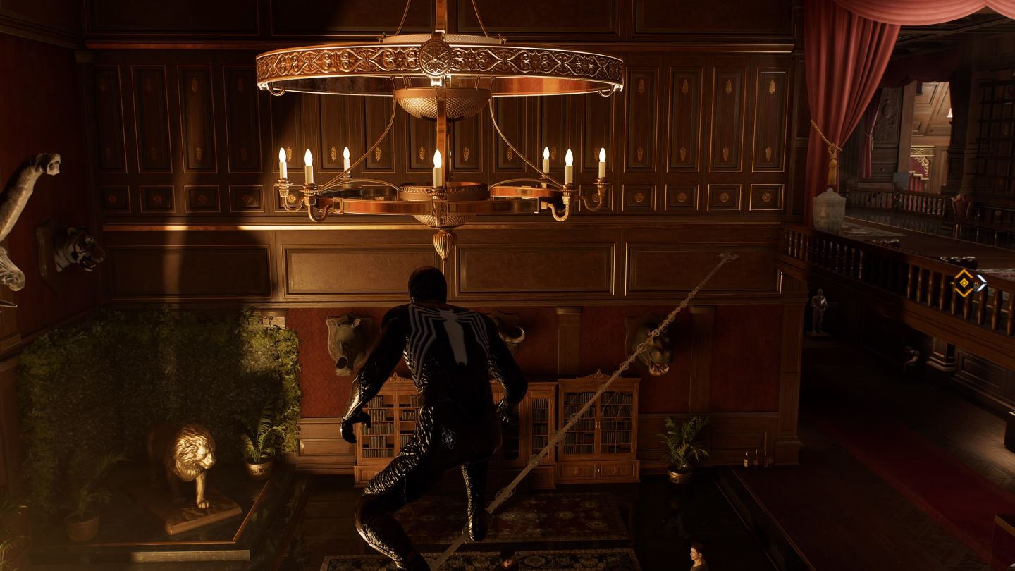 《漫威蜘蛛人 2》帶來的匿蹤玩法增加了策略與更多無聲行動,不單只能攀爬於天花板及牆壁襲擊敵人,最大進步就是能夠自由搭建蛛索,讓兩位蜘蛛人能夠更自由的襲擊敵人,達成無聲解決一個敵方基地的目標。不過隨著劇情推進,敵人也會有更強的無人機探查來阻礙,而且一旦被發現,敵人的增援數量也會比玩家想像中的來的多與難纏。