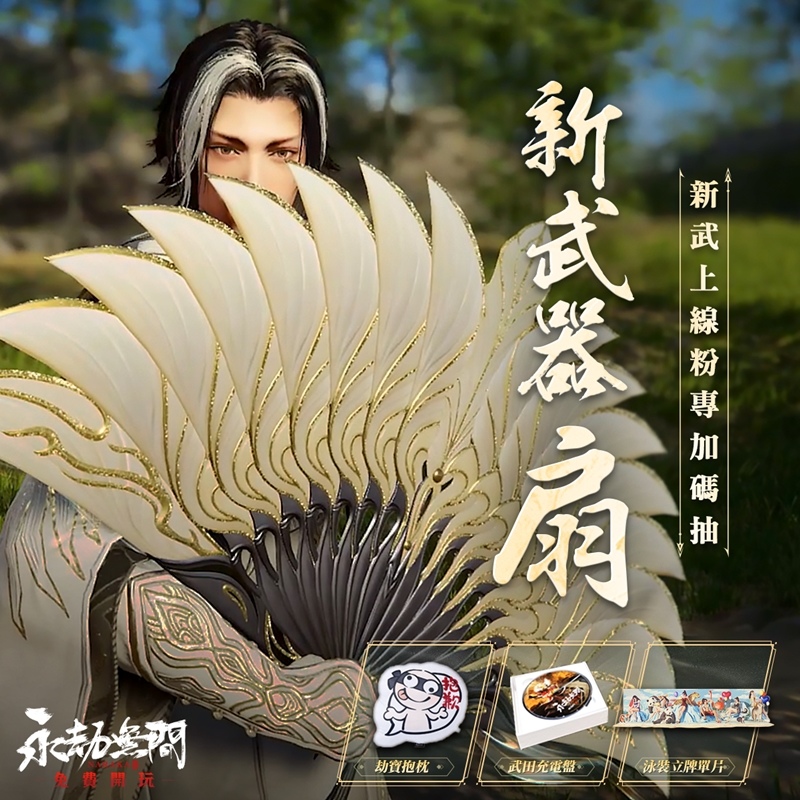 慶祝新賽季與新武器「扇」重磅登場!官方隆重宣布限定豪禮活動,只需前往官方 FB 粉絲團指定貼文留言分享,即有機會抽中《永劫無間》限量周邊禮物,包括經典的劫寶抱枕和稀有的限量角色公仔。千萬不要錯過官方粉絲團限定豪禮活動,把握機會立即參加帶走您心儀的周邊禮物。