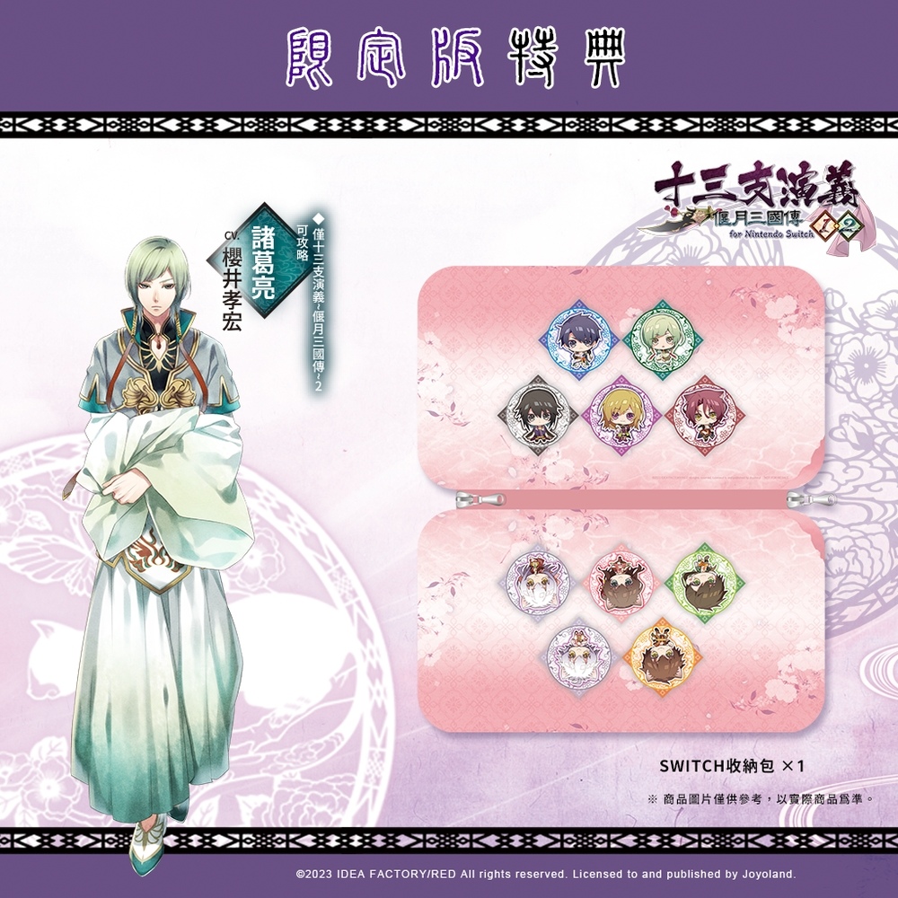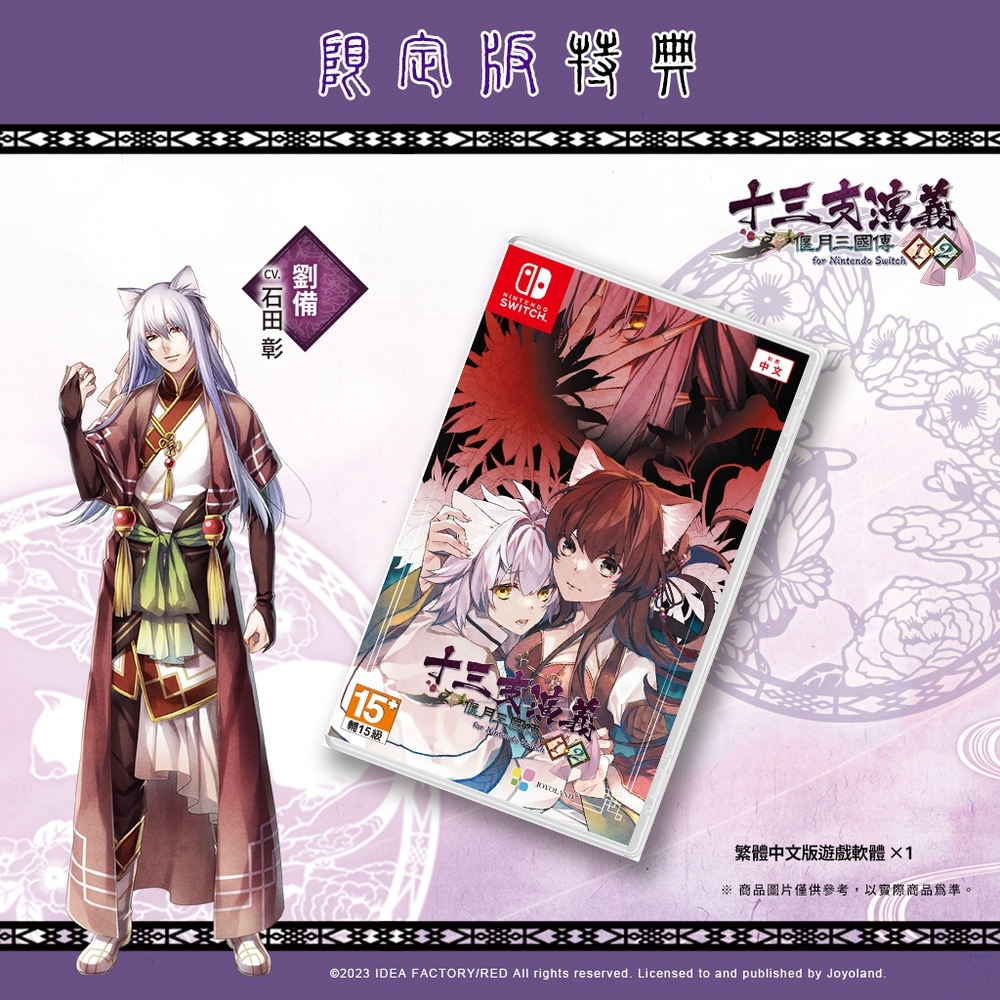 發行商 JOYOLAND 宣布,Idea Factory 旗下乙女遊戲品牌「Otomate」人氣乙女作品女性向戀愛ADV《十三支演義 偃月三國傳1・2 for Nintendo Switch》NS 中文版將在 2023 年 12 月 28 日(四)於亞洲區發售。今(20)日公開中文版獨家初回特典、限定版資訊。