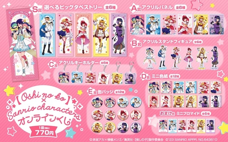 動畫《【我推的孩子】》與三麗鷗明星合作聯名的線上抽,由抽籤堂(くじ引き堂)販售並於 10/19 開抽。