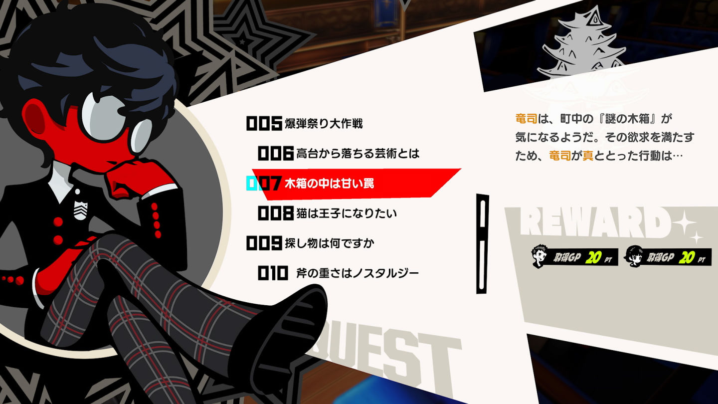 通過「任務」不僅可獲得GP,還能解鎖技能樹最高階的技能。此外,還能獲得生成強力人格面具的能力,不妨積極挑戰看看!