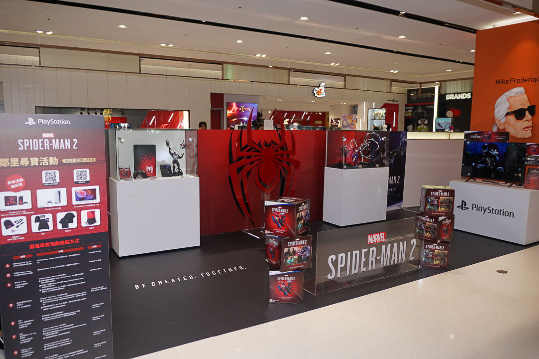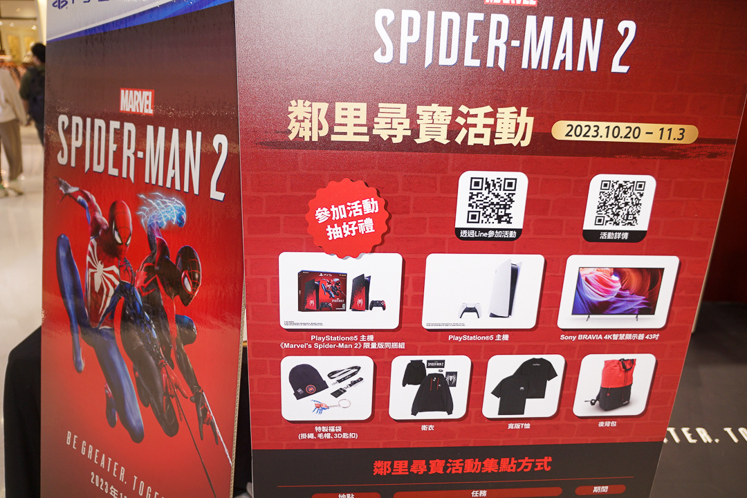 PS5 獨佔遊戲《漫威蜘蛛人 2》(Marvel's Spider-Man 2)今日全球同步上市。 SIET 除在台北東區打造 3D 影音廣告外,今日起開跑「鄰里尋寶活動」,走訪信義區各大主題景點,參與活動即可獲得限量遊戲周邊、抽選 PS5 主機同捆組、adidas ULTRA 4D ADVANCED聯名鞋款或Sony BRAVIA 4K智慧顯示器等大獎。
