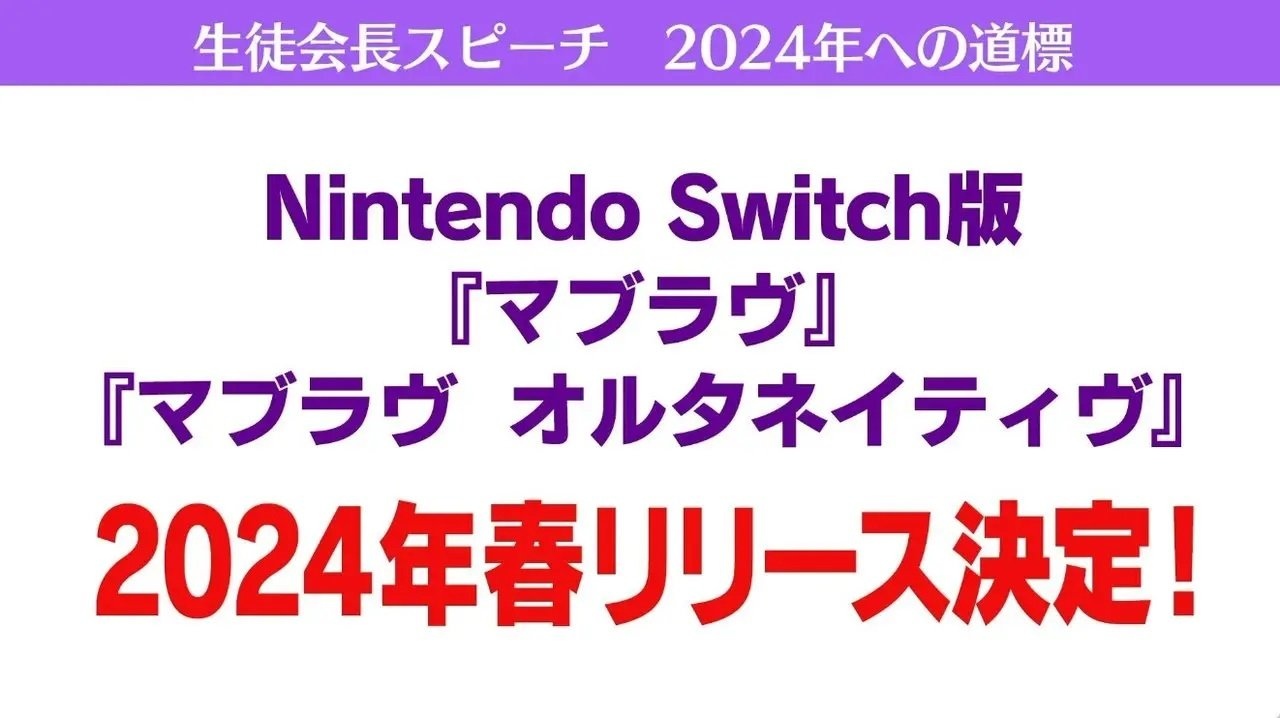 日本 aNchor 於上周末舉辦的線上活動「白陵大副署 aNCHOR 學園 WEB 學生總會 2023」中宣布,將預定自 2024 年春天起,推出 Nintendo Switch 版的《Muv-Luv》(マブラヴ)與《Muv-Luv Alternative》(マブラヴ オルタネイティヴ)與玩家們見面。