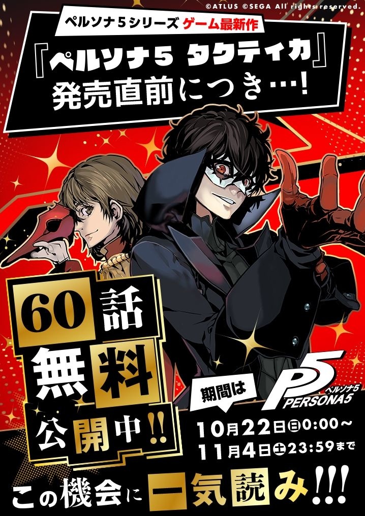 另外,作為這次《戰略版》本傳的《P5》,自 2017 年起就在日本小學館漫畫 App《Mangawan》,以及小學館的網路漫畫網站「Urasunday」推出由「村崎久都」作畫的漫畫連載。隨著這次《戰略版》的即將推出,官方也將會自即日起到 11 月 4 日為止,在《Mangawan》App 上開放總計 60 話的限時免費閱覽,喜歡《P5》的粉絲們可別錯過這次免費看漫畫的機會。