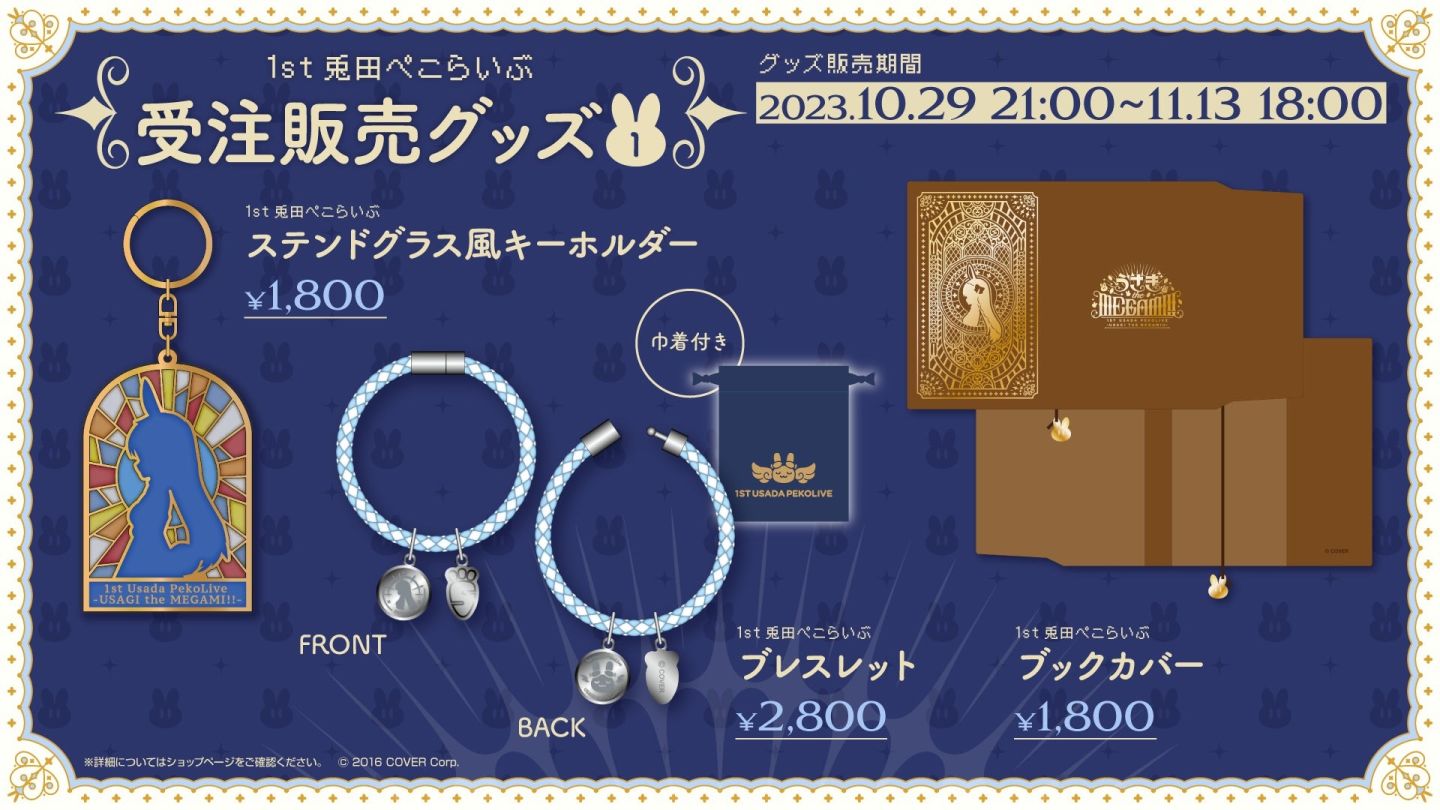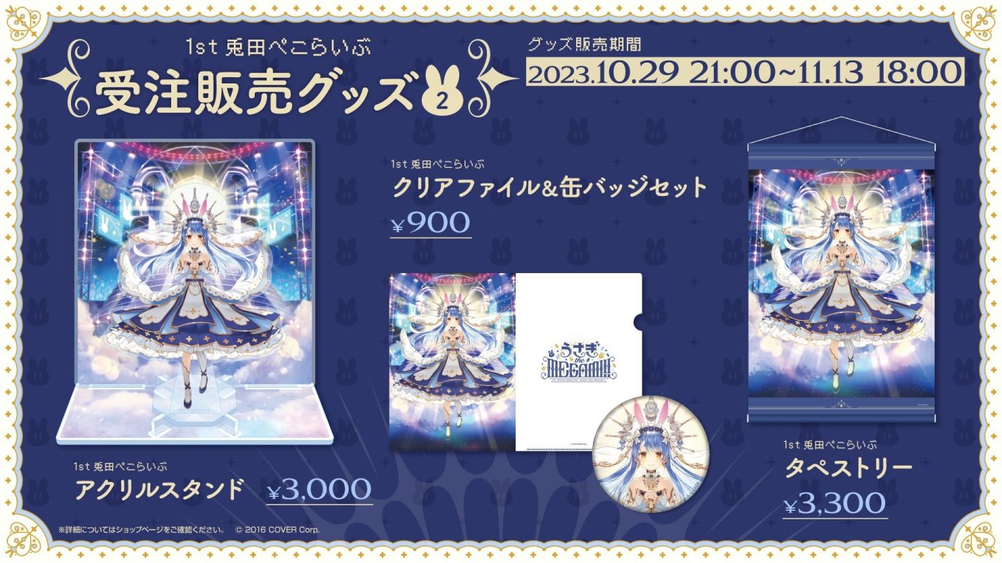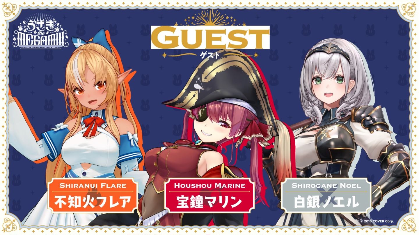 而在 12 月 6 日舉辦的個人演唱會「うさぎ the MEGAMI!!」上將邀請到 hololive 三期生寶鐘瑪琳/不知火芙蕾雅/白銀諾艾爾擔任特別來賓,現場演唱會門票的二次抽選和演唱會周邊第二彈皆已在 10 月 29 日開賣,新周邊追加了鑰匙圈/手鍊/書套/壓克力立牌/明信片與徽章組/掛軸等商品,各位野兔們不要錯過!