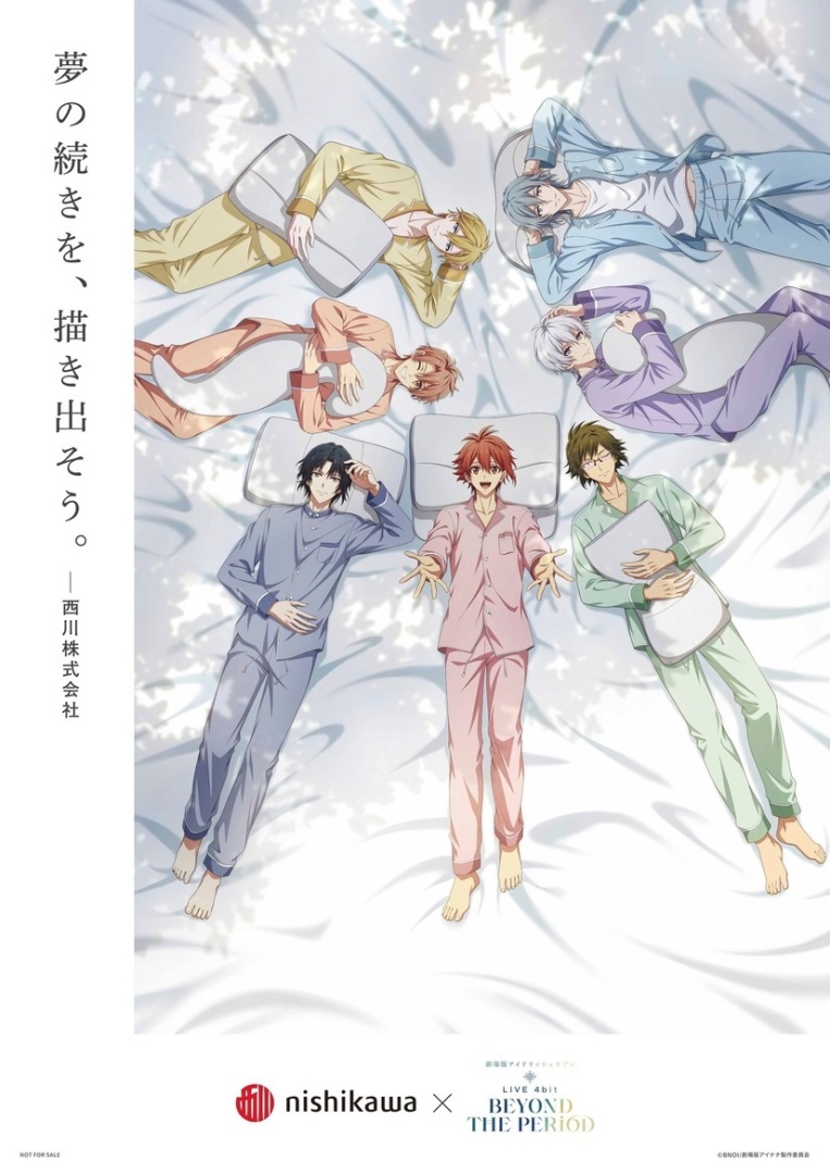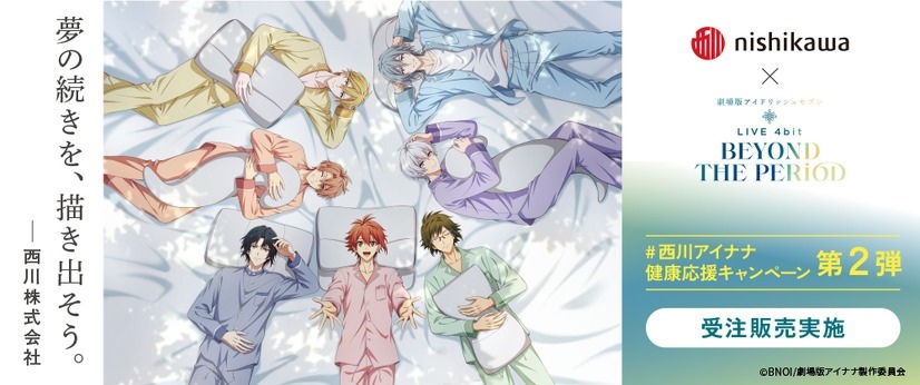 《劇場版 IDOLiSH7-偶像星願- LIVE 4bit BEYOND THE PERiOD》與寢具製造商西川推出聯名活動「#西川I7 健康應援活動」第二彈,這次的聯名周邊以 IDOLiSH7 的睡衣姿態為主要設計,將自 11/7 起陸續在西川寢具官網發售。