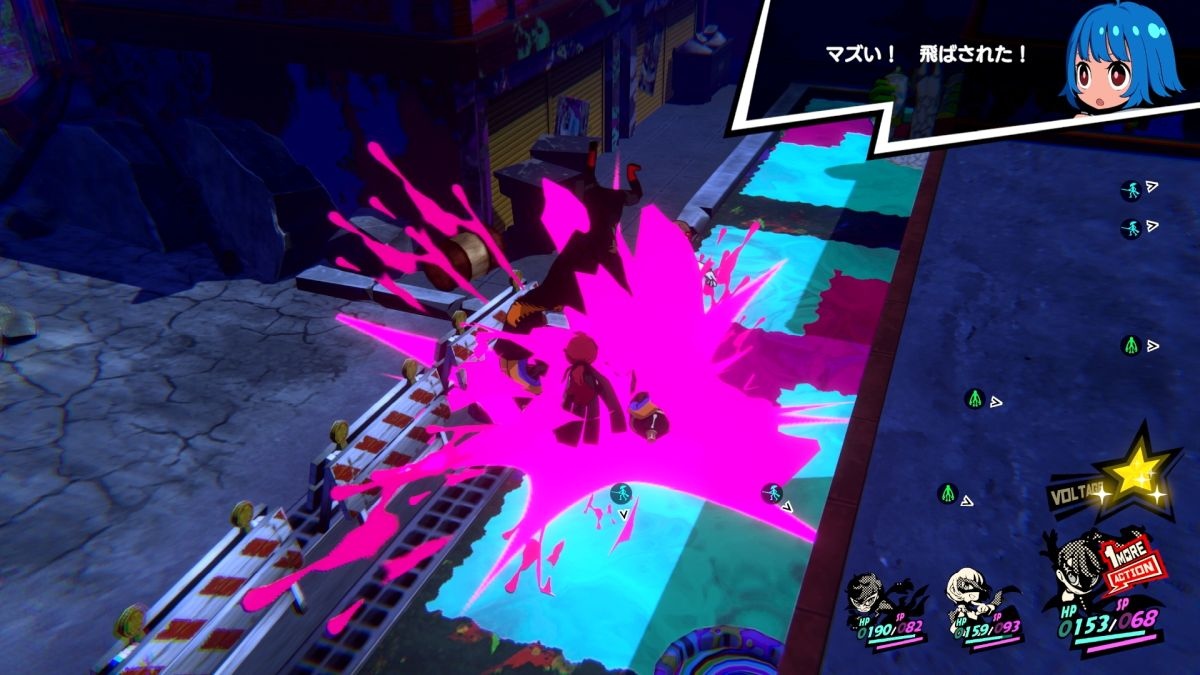 而在異世界「街頭」的戰鬥中,主角、明智吾郎及芳澤霞將會組成三人小隊來進行戰鬥,且在戰鬥中將會追加將截至目前為止的常識全部塗改的新規則。雖然 DLC 劇情的戰鬥與主線劇情相同,玩家可以躲在遮蔽物後來狙擊攻擊敵人,不過卻會追加「上色」的新要素,玩家在給予敵人傷害後,可以在對方周遭塗上我方勢力的顏色,並讓站在我方勢力顏色上的敵人無法格擋或是陷入倒下狀態。