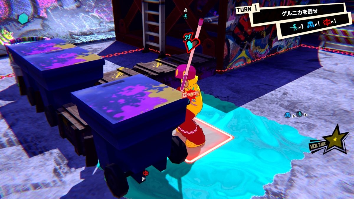 相對地,要是我方處在對方勢力顏色的格子上,除了會無法攻擊外,就算躲在遮蔽物後也會無法遮掩陷入無防備狀態,而不像主線劇情的戰鬥「只要有遮蔽就能確保安全」那樣,因此如何一邊拓展塗上我方的勢力顏色,一邊來小心前進打倒敵人,將會是 DLC 劇情在對戰時的重要關鍵。