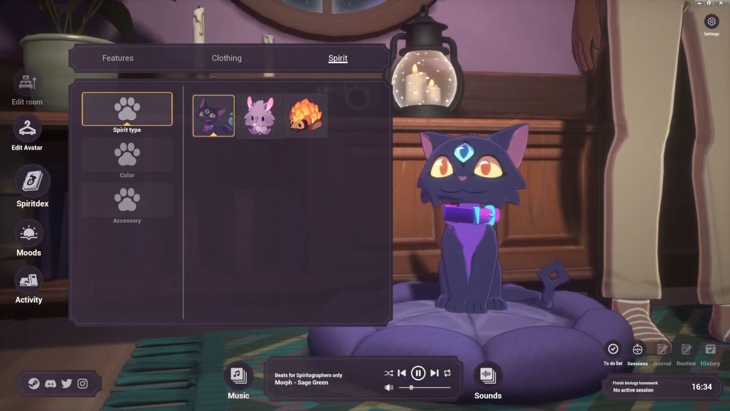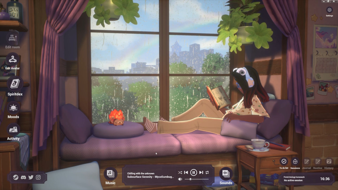 《Spirit City:Lofi Sessions》是一款比起遊戲性更注重實用性的沉浸式休閒模擬遊戲,能讓玩家在溫馨畫風和舒服的背景音樂中,展開一天的工作和學習行程;隨著時間的推移,可愛的精靈會因玩家房間內擺設的物品吸引而來,它們就會變成玩家的收藏並在下一次作業時陪伴在玩家身旁,進而了解更多關於精靈的資訊。