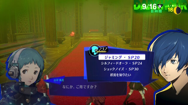 至於這次介紹的「山岸風花」(CV.能登麻美子),和主人公一樣都是月光館學園高中部二年級生。性格穩重且內向,由於也有比較怯懦的一面,因此有時會成為被霸凌的對象。因某個契機被關在影時間中,被主人公一行人救出而使人格面具能力覺醒。在那之後回應了招募,以 S.E.E.S. 一員的身分共同行動。