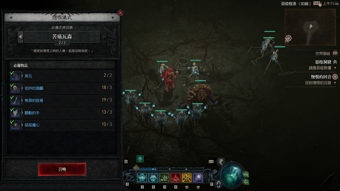 瓦森是門票入手方式最簡單的終局 BOSS,所需材料除了魔心之外也能藉由玄術師轉換,玩家只要多打地獄浪潮,很自然就能產出許多門票。另外在苦痛難度中召喚者還能拿到滑溜黏液蛋,這也是後續開都瑞爾的門票素材,再加上許多好用裝備掉落,即使門票入手難度最低,瓦森依然是非常值得花時間刷的終局 BOSS。