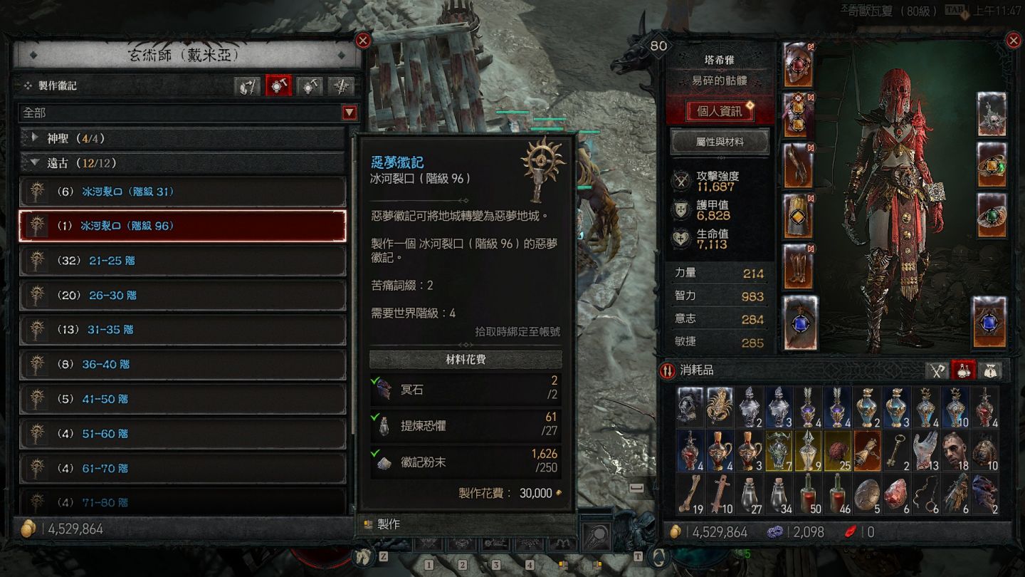 需求素材:提煉恐懼*9,於玄術師處製作惡夢地城門票、冥石