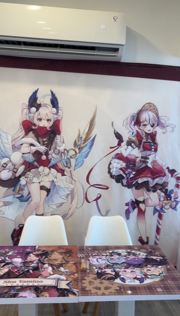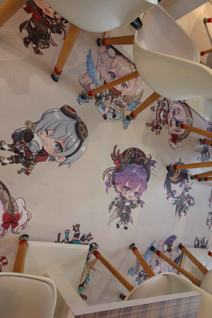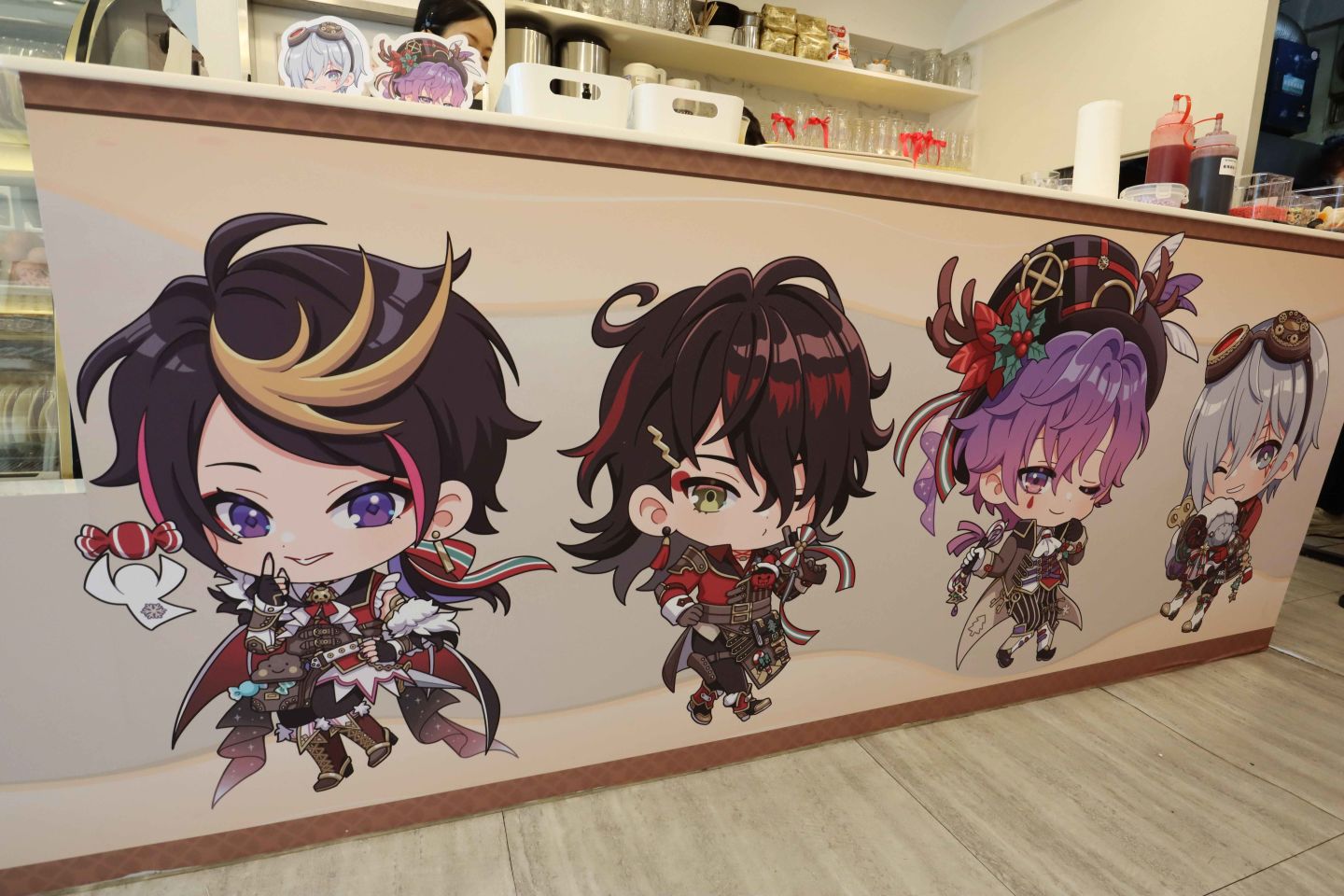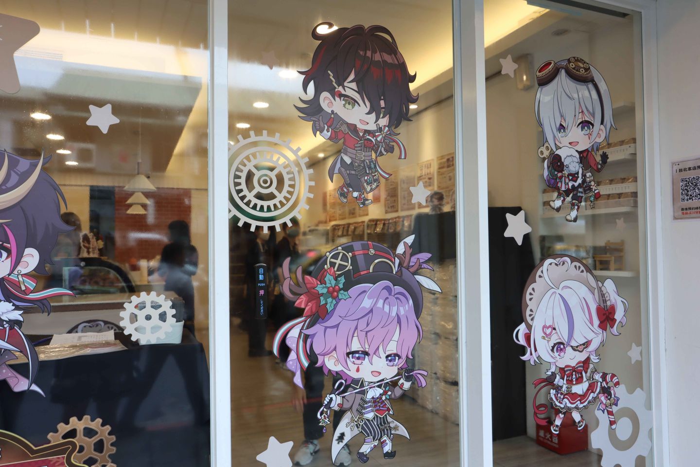 走到門口就能看到七位 Vtuber 的 Q 版可愛造型壁貼迎接客人入場