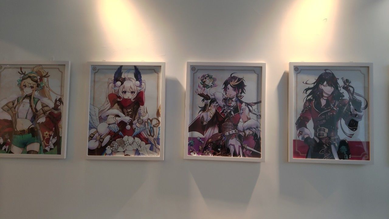 三樓牆上則掛著所有角色的畫框,以及投影 EN 的精華影片