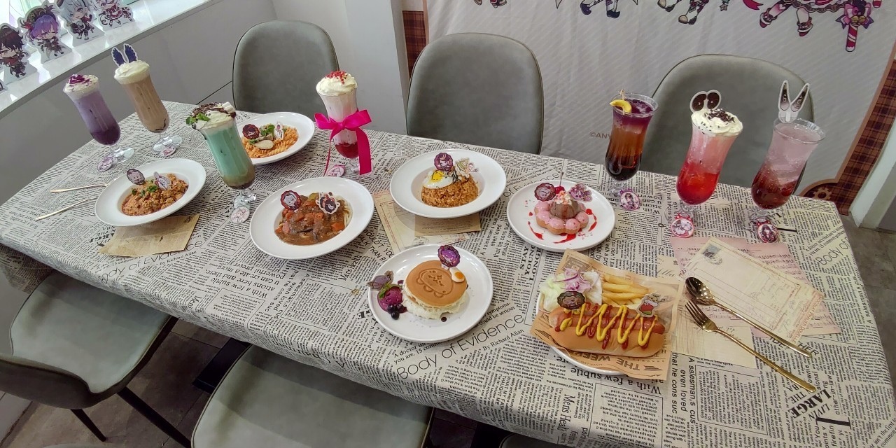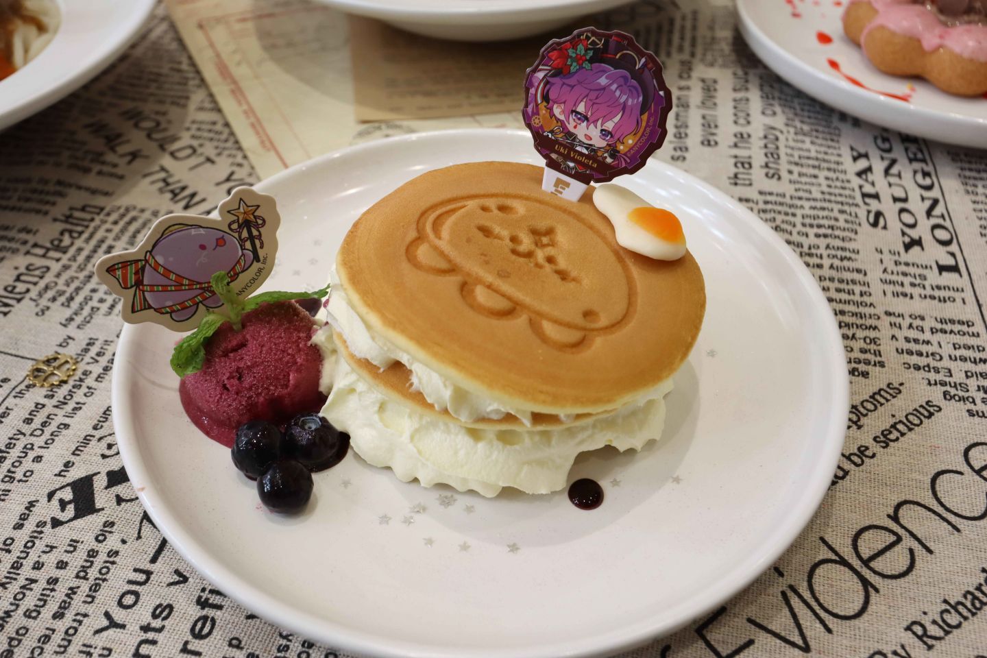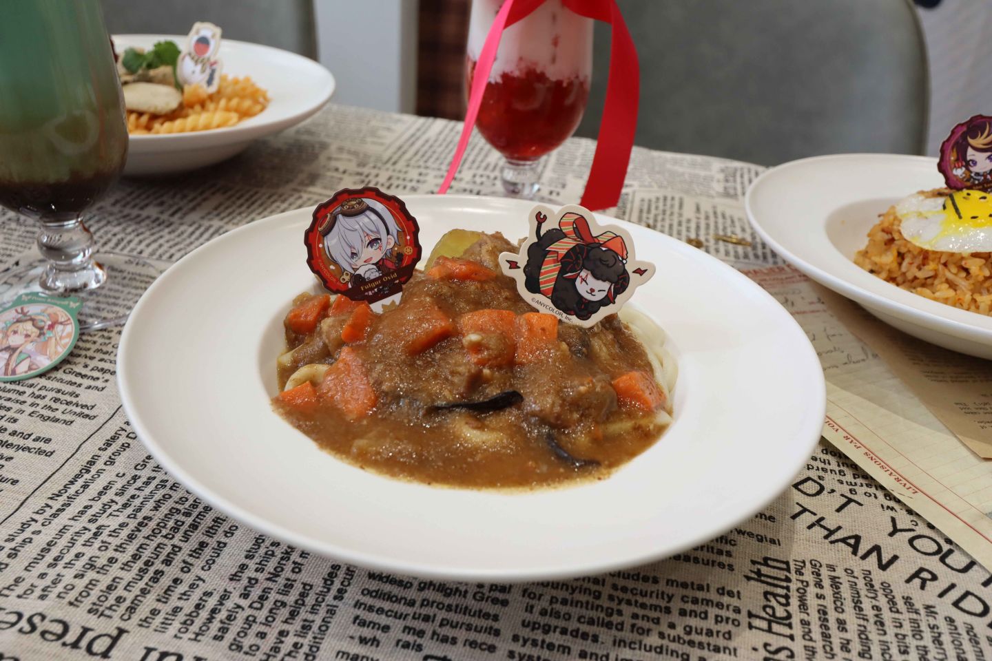 「OU-EN cafe」的座位編排全部都是 2~4 人的方形桌為主,桌子上也有貼合作 Vtuber 的桌貼,讓人非常好奇自己會做到哪一桌,今日編輯有幸坐到 Q 版 Fulgur Ovid 與 Uki Violeta 並排的位子,直接滿足編輯的 CP 夢,想點餐的話就掃桌上立牌的 QR 碼即可,由於餐點現做需要時間,因此建議有預約要去吃的粉絲們先點好想吃的菜再衝去買周邊喔!