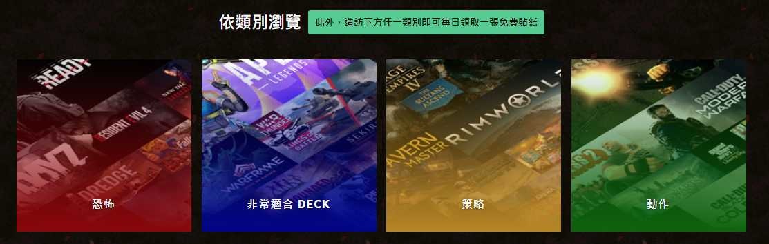 而這回秋季特賣並未設立季節限定徽章,但玩家可以透過「瀏覽類別推薦」獲得免費獎勵,特賣活動期間每天都會送出可用於 Steam 社群的貼紙等虛擬道具。