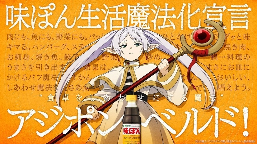 動畫《葬送的芙莉蓮》將與 mizkan 旗下常賣調味料商品「味ぽん」(是一種加了醬油、高湯的調味醋)合作,主打這款調味料是「為餐桌添加幸福的生活魔法」,預計展開各種活動。