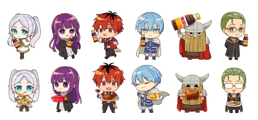 這次合作將在不定期推出的短篇動畫《葬送的芙莉蓮~●●的魔法~》中置入,預計會在 12 月上旬公開;另外也特別為劇中角色芙莉蓮、費倫、修塔爾克、欣梅爾、艾冉、海塔繪製「抱著味ぽん的樣子」與「吃飯的樣子」兩款 Q 版圖,未來有機會製作成周邊商品。
