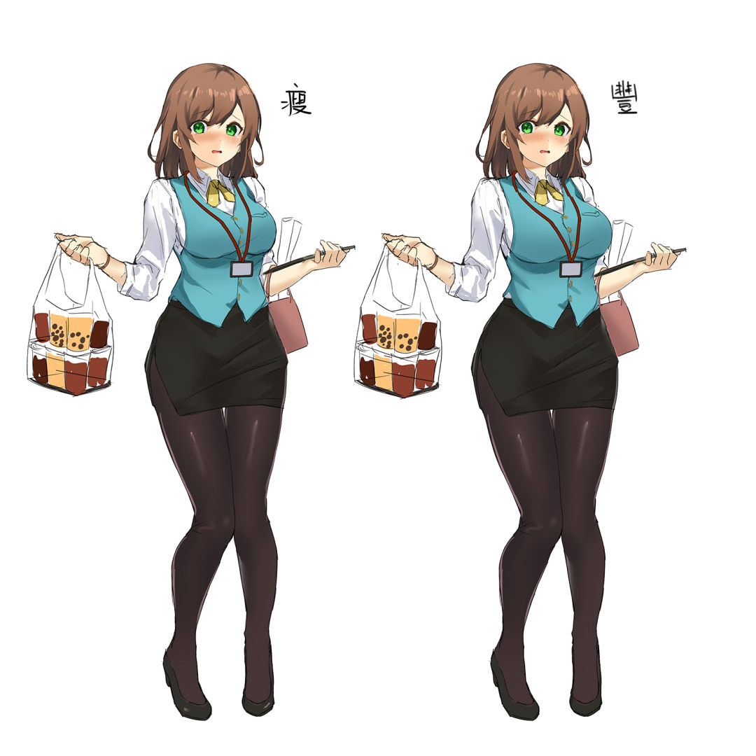 第三位則是玉山銀行天然呆屬性 OL,在草稿圖中擬了纖瘦和豐滿兩種不同風格,最後龜頭生野郎老師成功跨越了奶愈大愈好的本能,選擇了更適合 OL 服表現色感的纖瘦方向,機車族 OL 常見要素安全帽及手搖飲特色也會如實呈現。