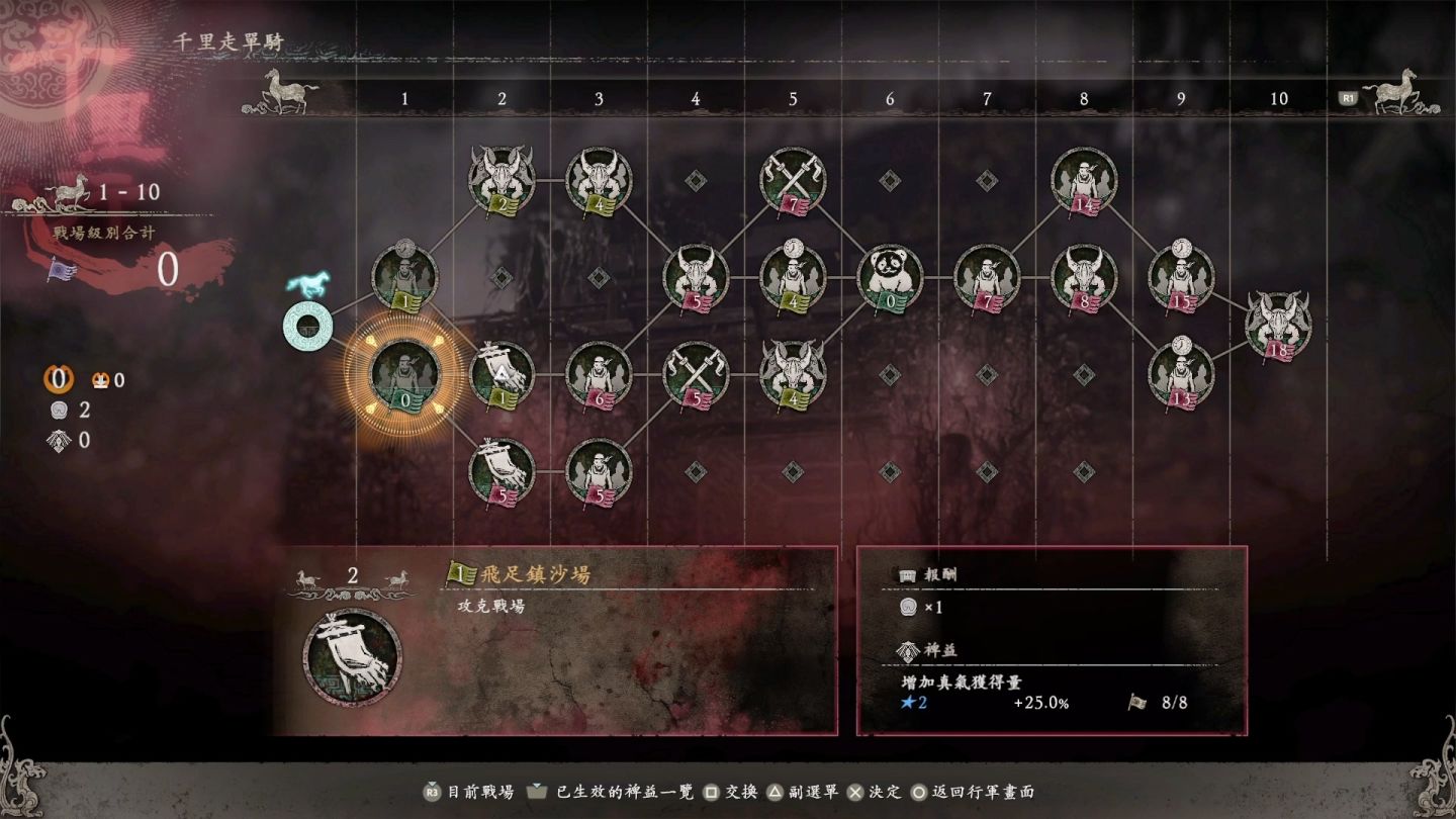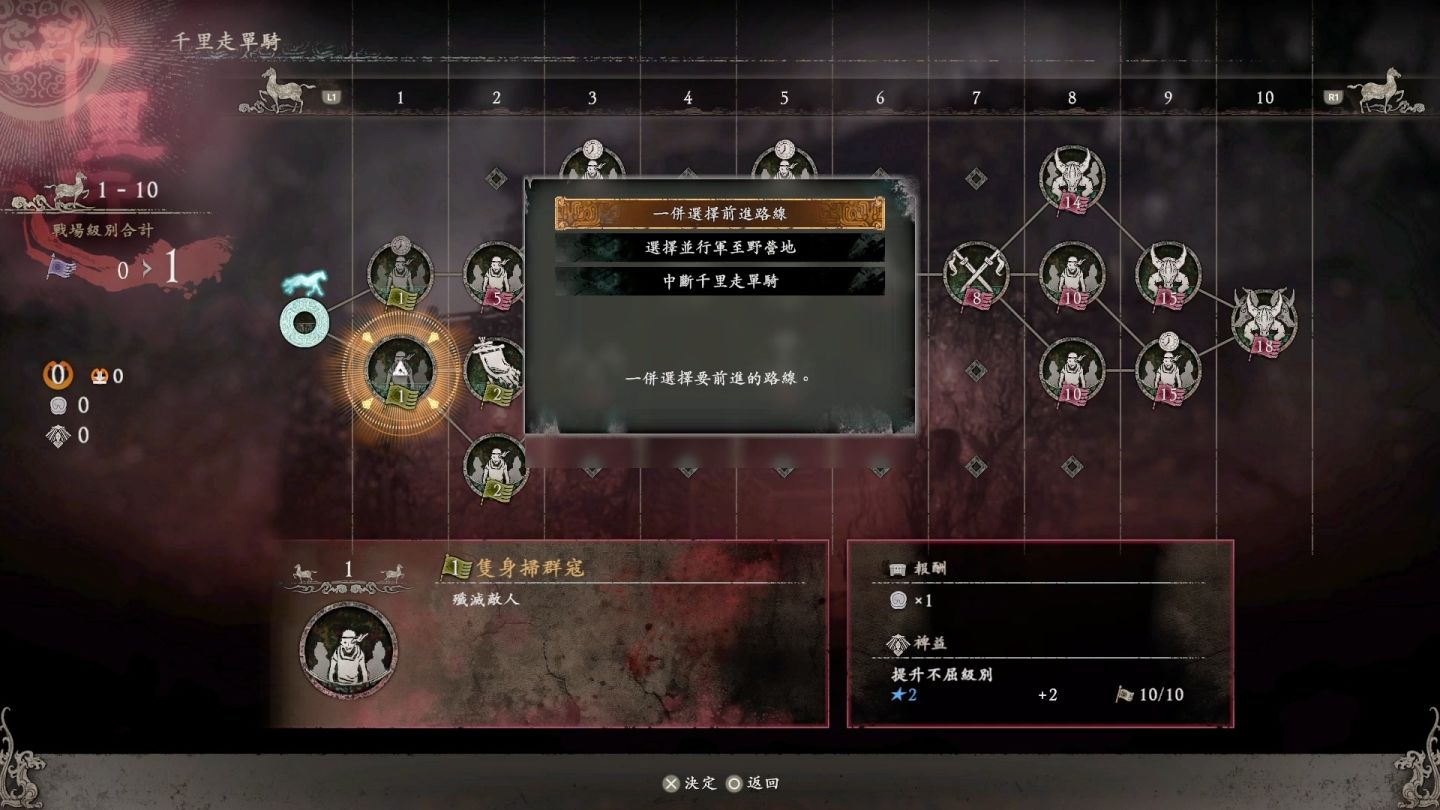 這次以三國演義中的「關羽千里走單騎」發想,提供挑戰連續關卡,在有限的補血次數當中獲取報酬,每一里提供限時戰、生存戰等不同效果,每前進十里就會以達「野營地」可以暫時休息,獲取獎勵,就算挑戰失敗,也會重整挑戰路線,因此每次遊玩路線都會有不同變化。對於讓想挑戰自我的玩家有更高難度且耐玩的內容,結合本次「機略」就可證明自己可以像關羽一樣走千里。