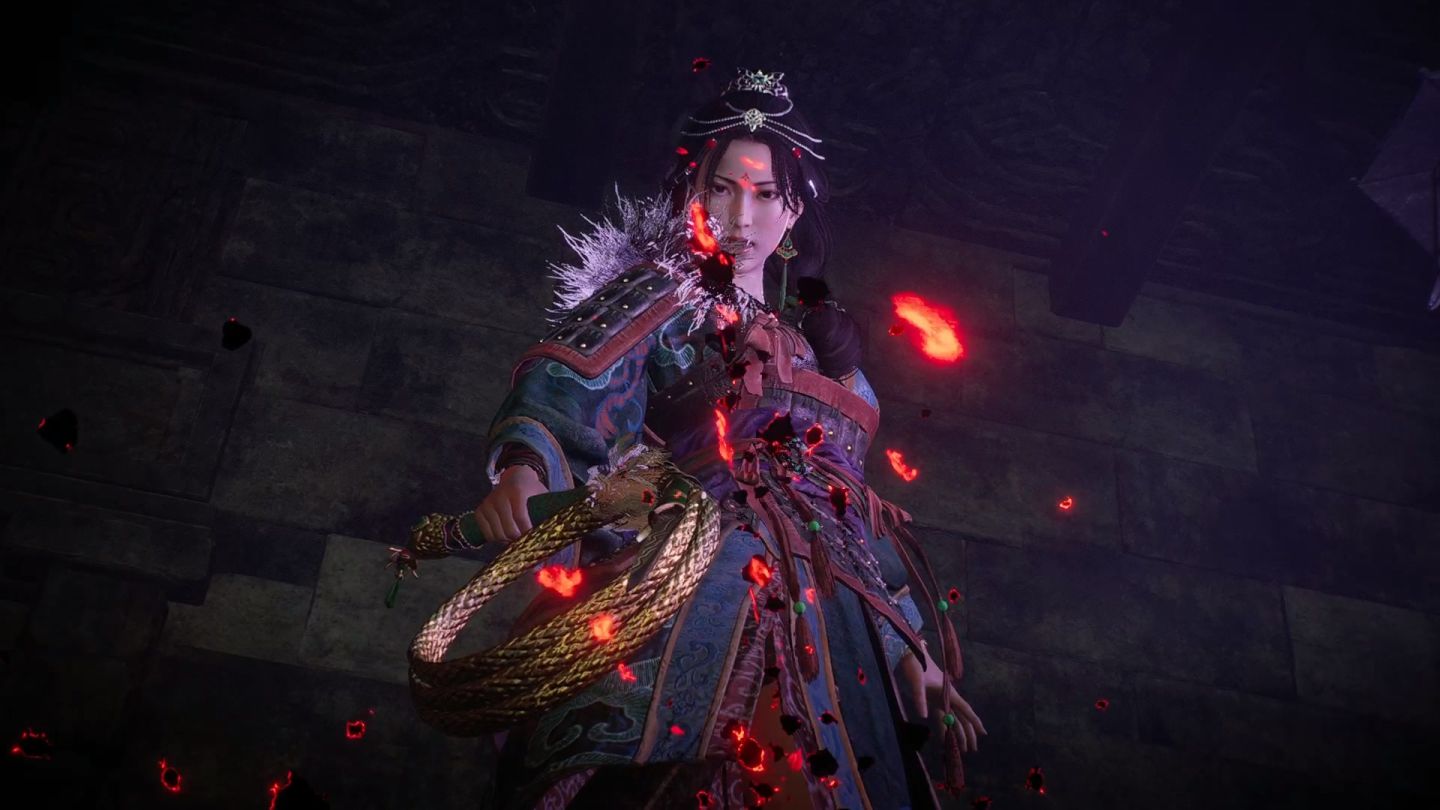 在水畔村遇見阿斗母親「糜氏」英姿後,她便邀主角前往丹砂礦脈一探在于吉死後此地未了的動亂。她也將作為共鬥武將登場,而她使用的武器「長鞭」更是這次 DLC 的新增武器。