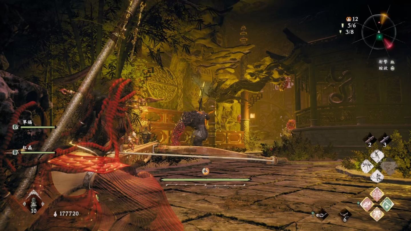 新武器長鞭屬於中長距離的武器,但是要掌握攻擊距離需要點時間習慣,段數多適合使用奇術的玩家使用。廣範圍而連續不斷的攻擊是其特徵,但是對單體巨型敵人就沒有特別吃香。特別的是開啟強化狀態雖然無法回氣,但會改變攻擊動作有所變化與性能,化解則有同時攻擊周圍的效果,在這一關可以與糜氏一同共鬥感受一下長鞭的特性。