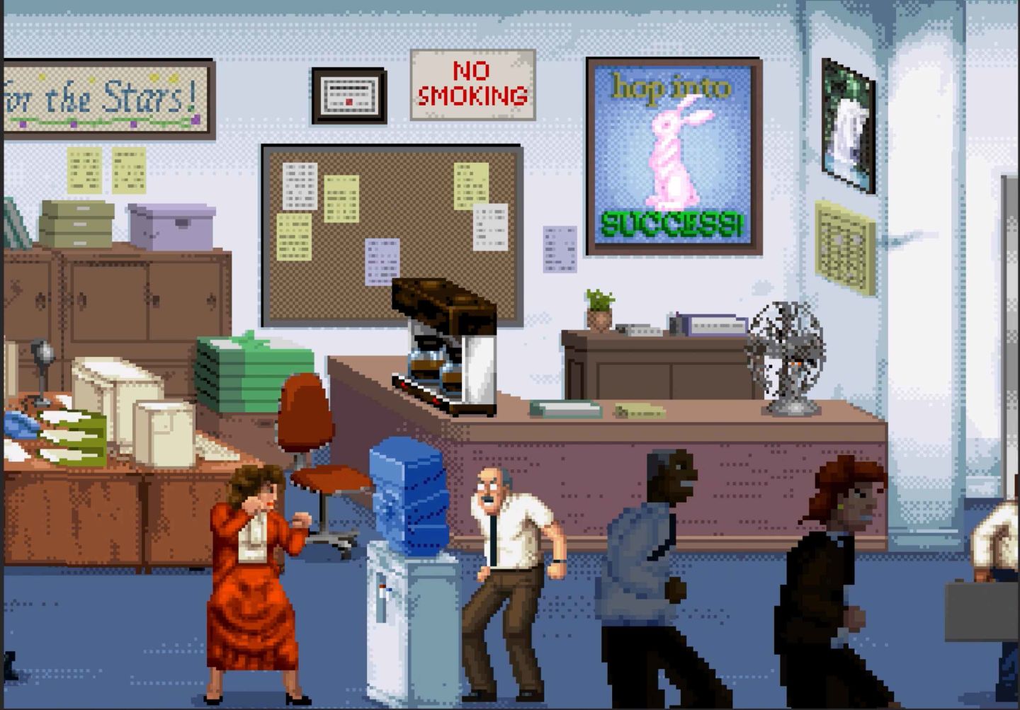 《Rising Up》是一款簡短的橫向卷軸遊戲,整體風格致敬經典作品《街頭快打》系列,在遊戲中玩家要扮演一名中年上班族,他因為影印機故障導致壓力激增暴怒,因此在辦公室裡毆打設備、同事和保安。