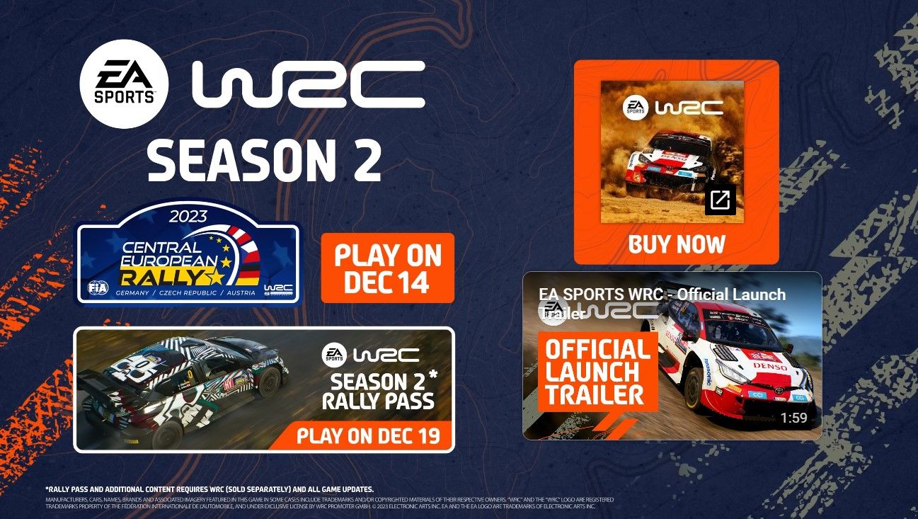 國際汽車聯盟世界拉力錦標賽(FIA World Rally Championship)官方遊戲《EA SPORTS WRC》現已透過 PS5 與 Xbox Series X|S,以及 PC 的 EA App、Epic Store 與 Steam 等平台推出。如需更多關於遊戲及第 2 季更新的資訊,請前往官方網站與社群查看。