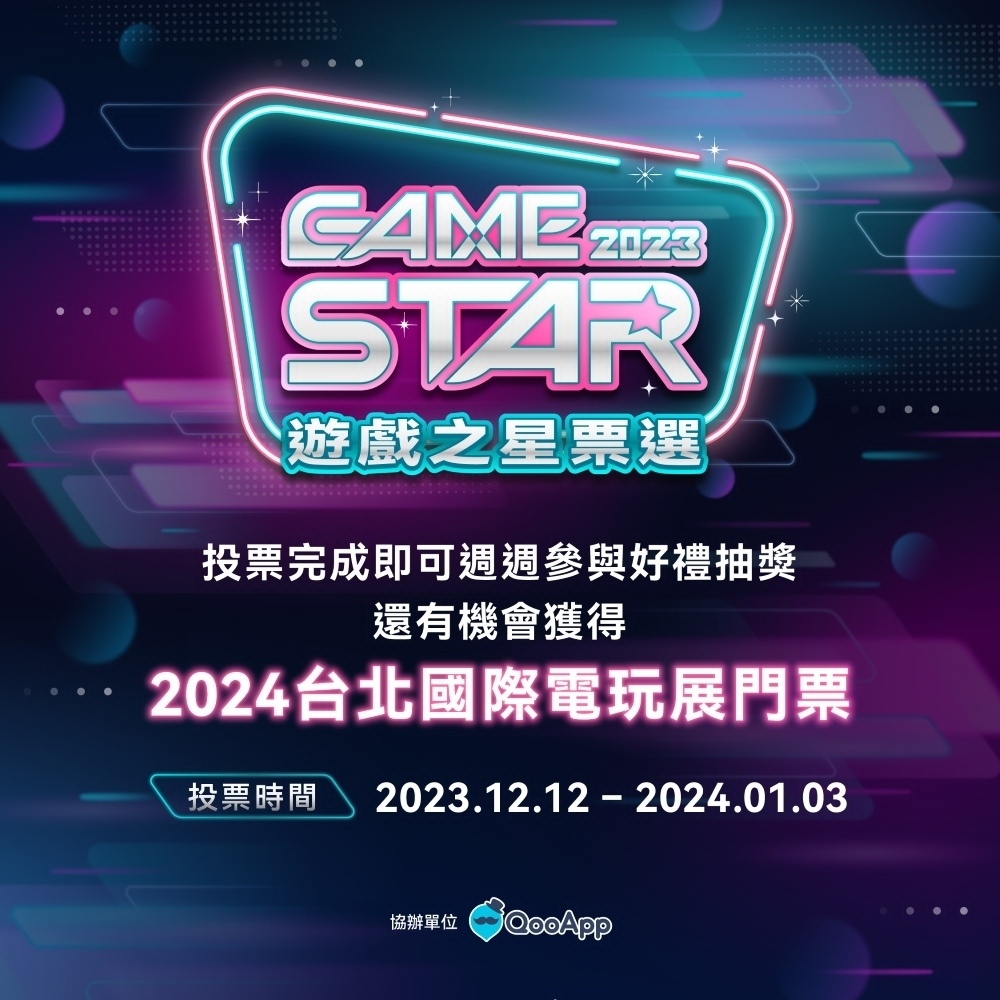 由台北市電腦公會主辦的「Game Star 遊戲之星票選」即日起至 2024 年 1 月 3 日 14:00 止,玩家可透過 Facebook 帳號參與,投票支持當年度最喜愛的遊戲,為鼓勵玩家共同參與,凡於活動期間完成投票即可參與好禮週週抽,最多可享 3 次抽獎機會,精美獎品總價值超過 50 萬元,邀請玩家為喜愛的玩家打 Call、投下珍貴的一票。