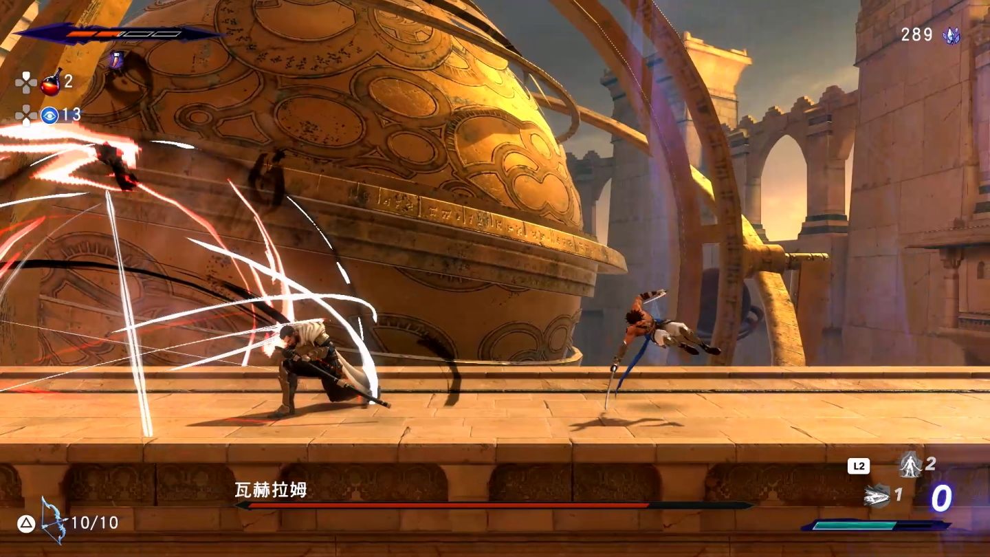 雖然只是序章內容,在其間的了兩場戰鬥還是相當有挑戰性的,第一個首領賈汗達爾雖然不怎強,但玩家初始只有三格血量的情況下,還是容錯度有點低的首領戰。賈汗達爾是個蠍獅造型的首領,還會從地下冒出毒沼來,是相當致命的攻擊,加上召喚出更多干擾,作為序章的強敵相當有感,當玩家能夠撥檔他的衝刺攻擊更能有奇效,也會有成就感。