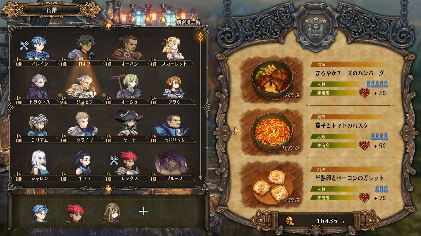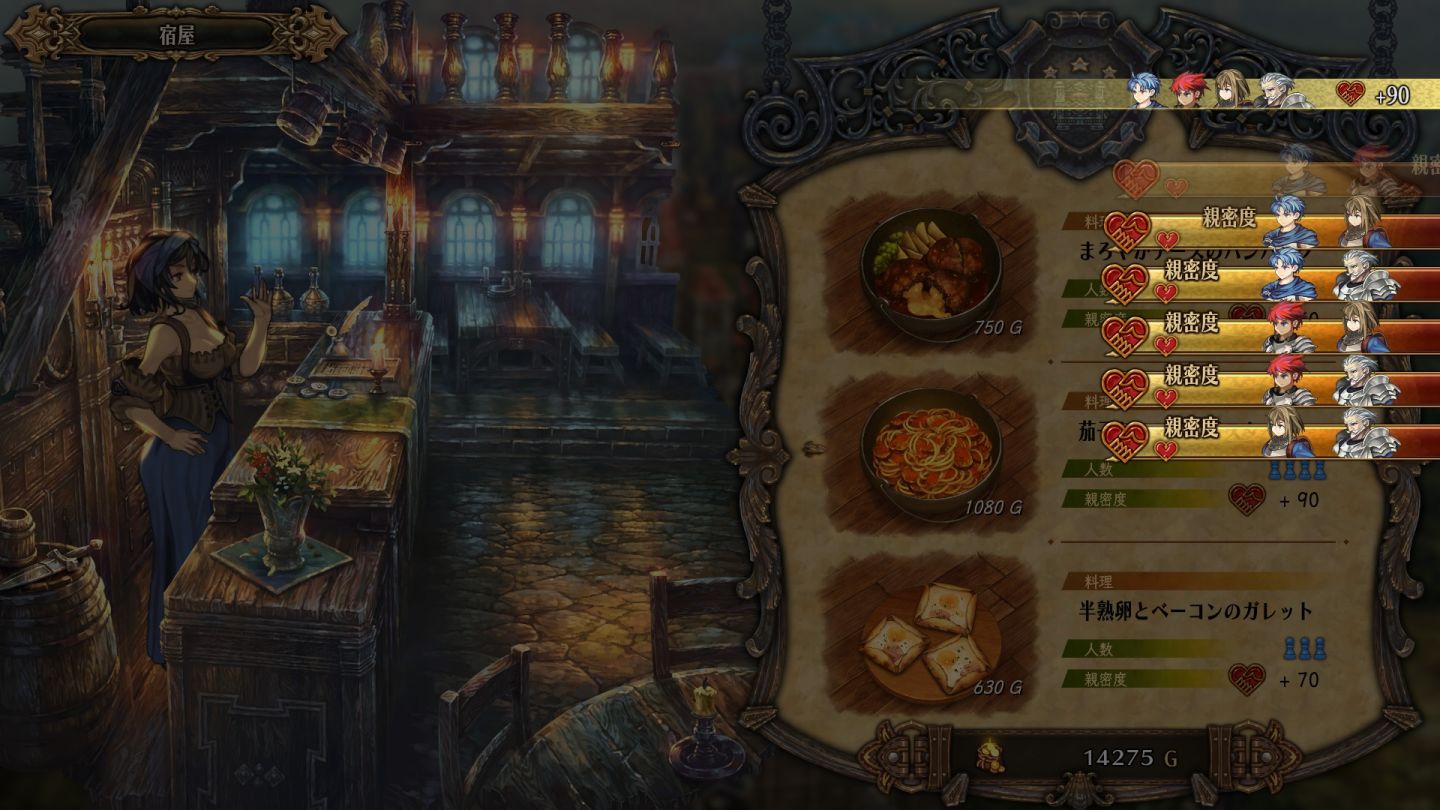 只要在位於城塞都市等地方的「旅店」享用料理,便能提升親密度,所以多多和想要打好關係的角色一起用餐吧。根據選擇的料理不同,能一起用餐的人數和提升的親密度也會有所不同。
