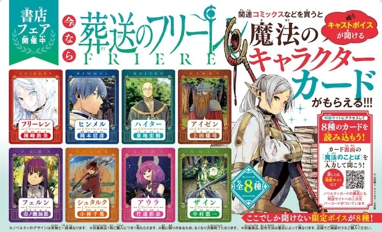 《葬送的芙莉蓮》單行本 12 集將於 12/18 在日發售,為紀念新書上市,12/18 起日本全國書店陸續開始進行「可以聽到聲優語音魔法的角色卡片」發送活動。