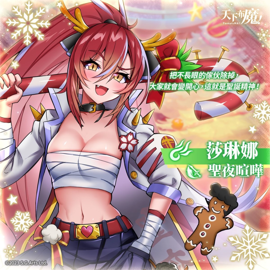 本次活動專屬卡池將開放至 1 月 17 日,各位玩家請把握機會取得四位限定 SSR角色「聖夜喧嘩 莎琳娜」、「性誕馴鹿 希依」、「性誕戀歌 伊布利斯」與「雪夜幻夢 阿爾蒂亞」,不僅在戰鬥上能搭配出更多靈活的隊伍配置,更可以在魔王城中享受這場年度最大的盛典。