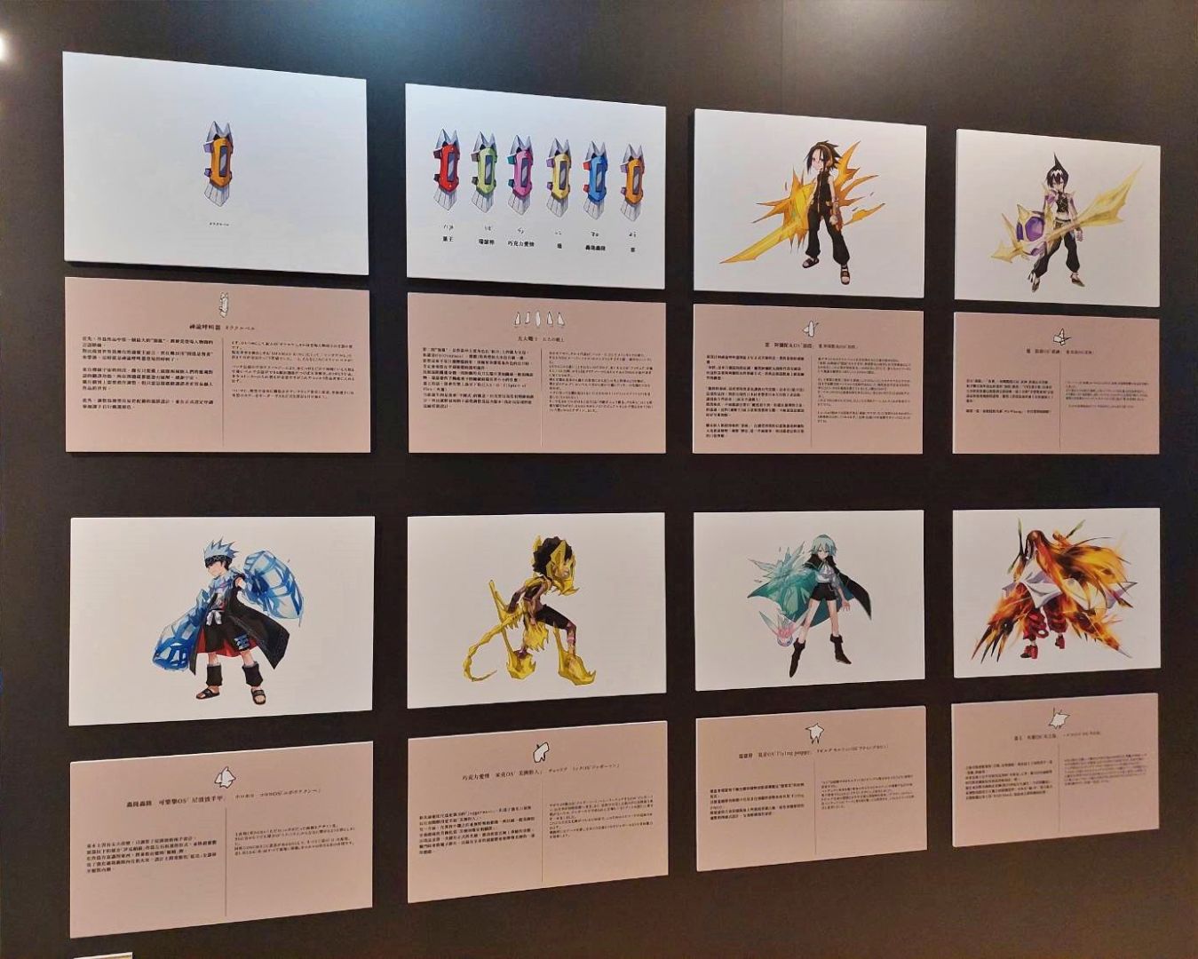 入口走道還有針對展覽主視覺圖六位角色於附身合體之後身上超靈體構造的介紹,以及一些設計心得。武井老師所使用的設計都是有意義的,他也把這些元素分別致敬什麼或是取自哪裡都寫得相當清楚,在看過介紹後想必會對每個角色的附身合體狀態又有更新一層的認識!而入口走道的盡頭則有展示武井老師作畫過程的影片,影片分為兩段,另一段則在展場的最後方,喜歡觀賞作畫過程的粉絲絕對不要錯過。