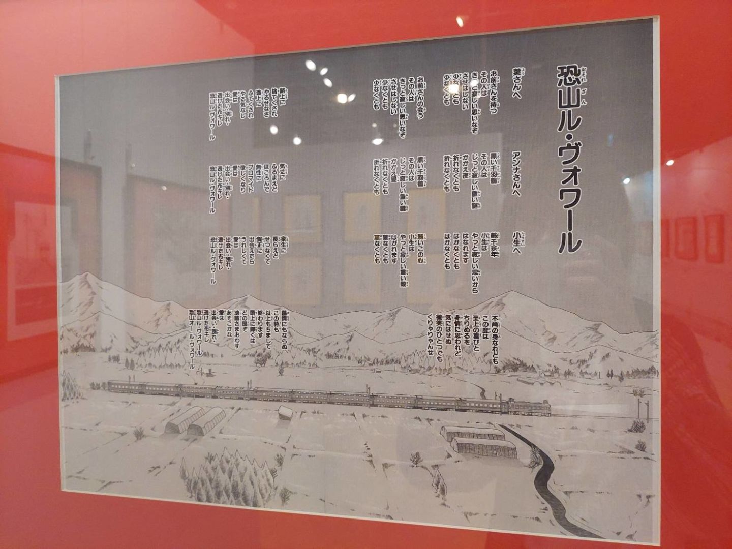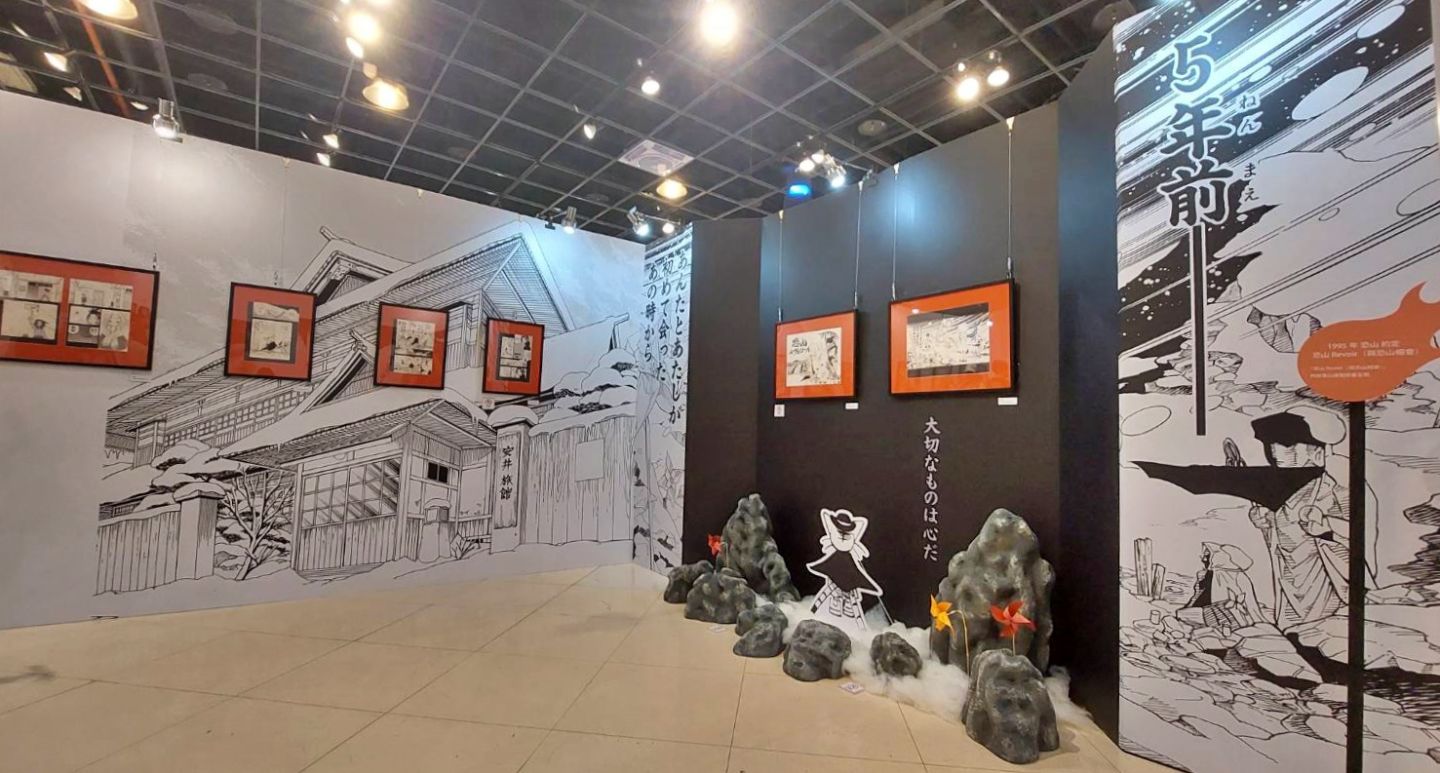 接下來就是本次特展的重頭戲,人氣篇章〈與恐山會面〉講述葉與安娜首次見面的經過,這次在展區中完整呈現,不僅有讓人鼻酸的全宗背影,展區內還不斷播放聲演安娜的林原惠所演唱的同名歌曲,所見所聞皆是淒美情景,也難怪主辦單位推薦死忠粉絲一定要帶著面紙來觀展了。