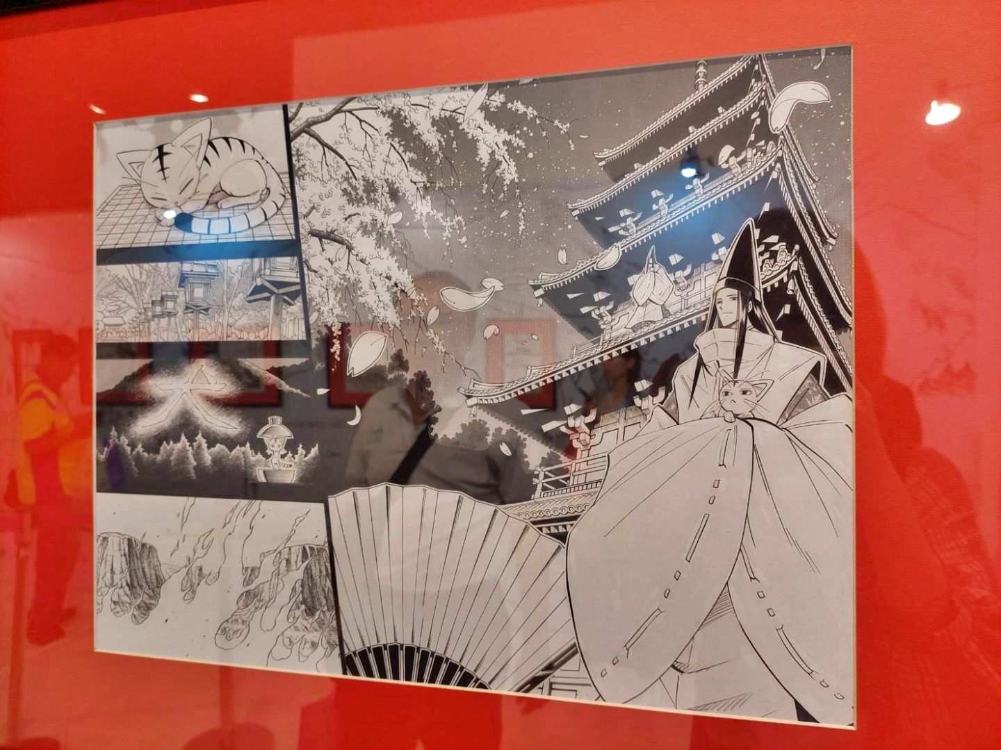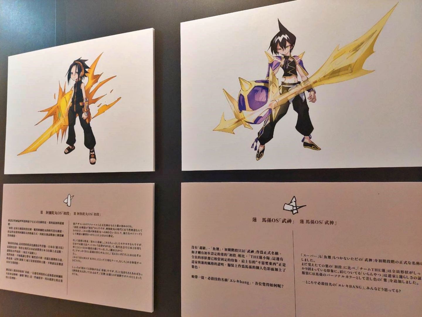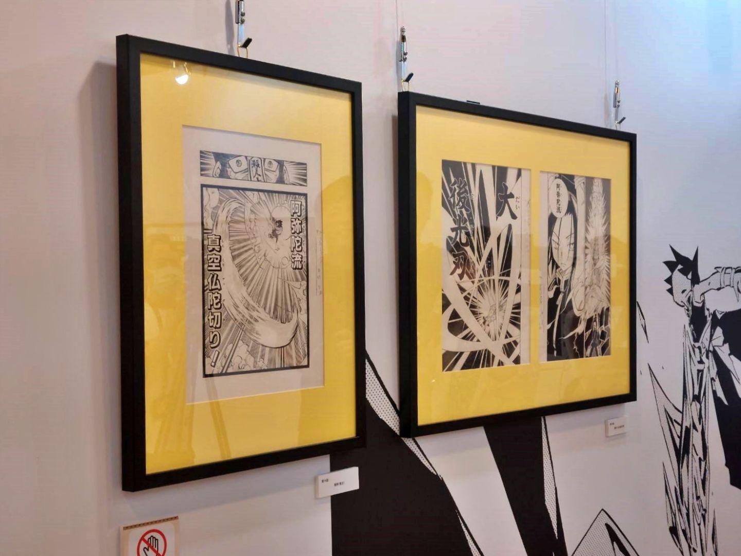 接著是《通靈王》出場角色牆,兩面圍繞成六邊形的展版,將主要角色以及於通靈人大戰中登場的重要隊伍一一繪出,可在此重新複習一下有哪些重要角色;向前走進入原畫展示區,這一區以漫畫中跨頁的大招場面為主要展示,為了凸顯超靈體招式的巨大,武井老師常常使用跨頁大畫面表現,這次還將這些場面輸出到展示牆面上,粉絲們便可以在展場中觀賞到等身大場面,一飽眼福!同時也別忘了觀察原畫上網點的使用、筆畫勾勒的痕跡。