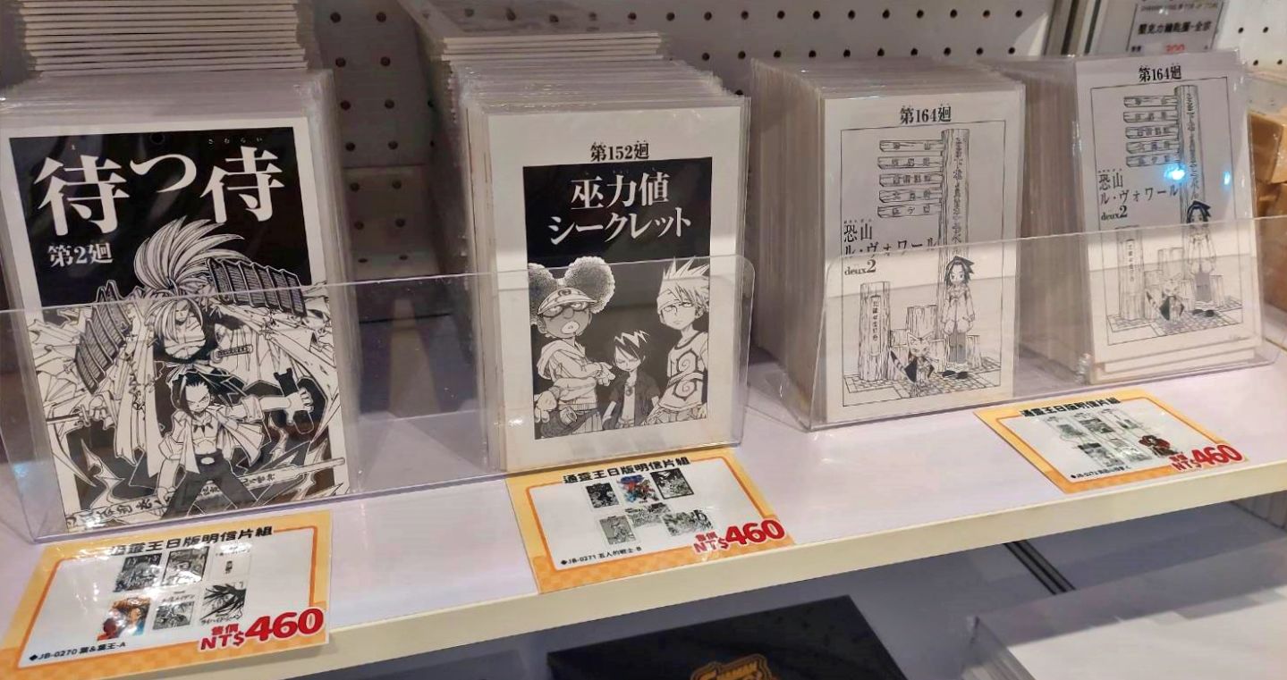 看完特展後,快閃店為各位粉絲準備了許多商品以便珍藏特展回憶。這次的日版商品皆是來自從 2019 年底起開跑的《通靈王》20 週年原畫展,包括朱印帳、安娜的念珠,還有許多與發奮丘溫泉相關的周邊,不可或缺的登場角色立牌,以及將許多經典漫畫內頁製作為明信片組、可自己填空的便條紙等等。除此之外還有不少有趣且值得收藏的大集合,比方說各隊徽章、場景壓克力立牌;想要收藏武井老師重新繪製的美圖,那絕對不可以錯過隨機色紙、珪藻土杯墊。