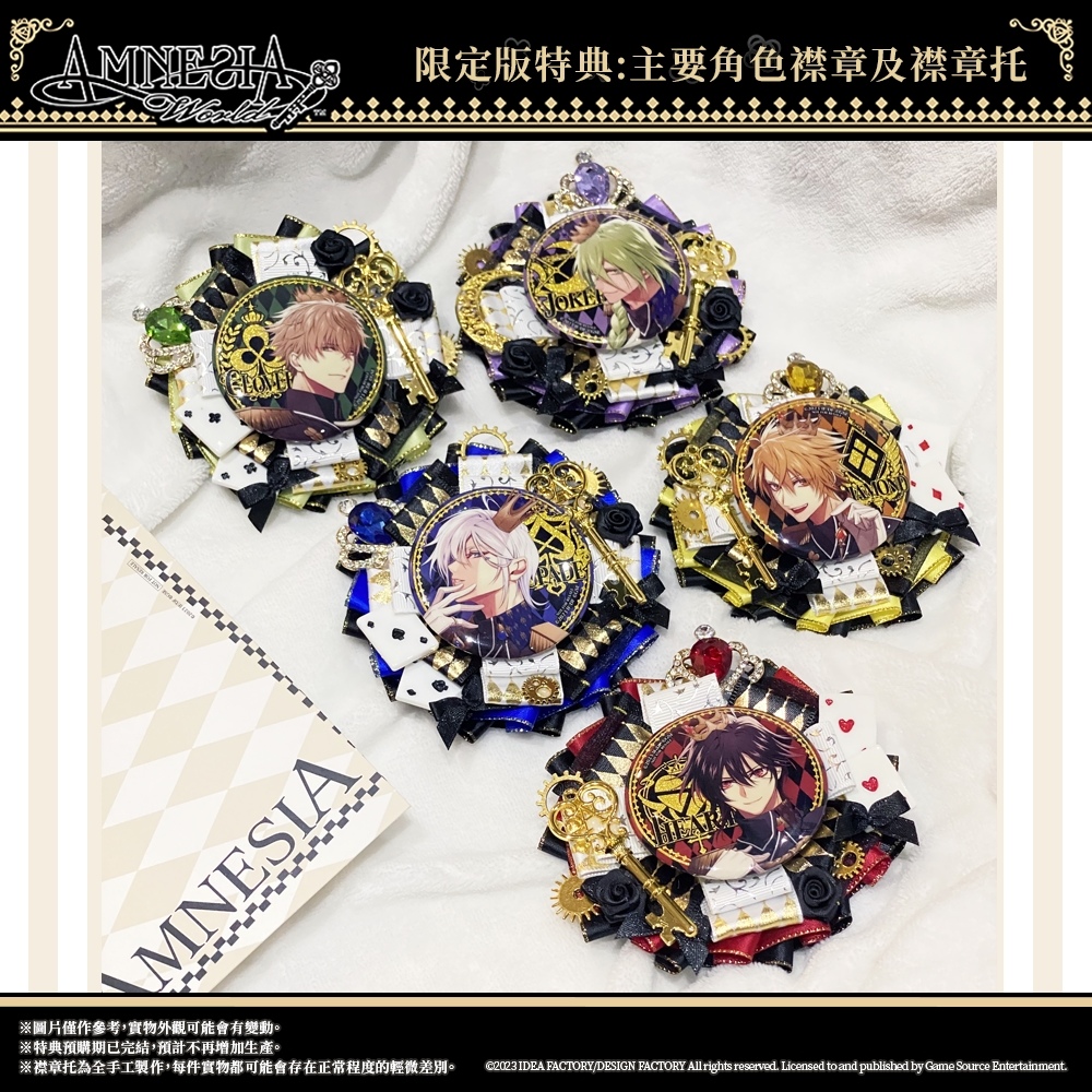 2、《失憶症 Amnesia:World》主要角色襟章(全套5款)