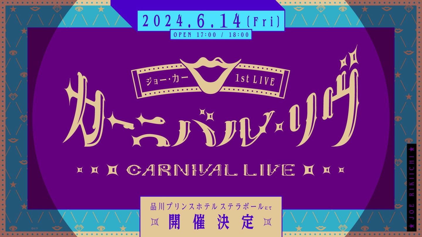 ANYCOLOR 宣布,隸屬於虛擬偶像事務所彩虹社的 Vtuber「周.力一」(ジョー・力一)將在 6 月 14 日於品川王子大飯店「Stellar Ball」舉辦個人 1st LIVE「カーニバル・イヴ」,並公開同名迷你專輯的最新資訊。