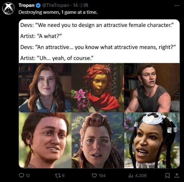 經常對遊戲界發表高論的《暗黑破壞神2》前製作人 @Grummz 也轉發該推文,並稱「遊戲女角確實就如同現實中的女人,只是並非那些(西方)開發者想讓你看見的,身體自主運動實在發展得太過頭」