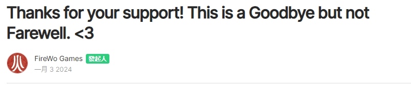 在正式公開後,該遊戲也受到大量關注,留言中有許多熱心人士聲稱可提供相關免費資源,如考據資料、配音、劇情,甚至提供法律版權咨詢等等。或許是收到了更多支援與相關意見資訊,開發者暫時中止現有的 kickstarter 募資計劃,並表示會在未來提供更有吸引力的獎勵,新時間表與計劃會在後續公開。
