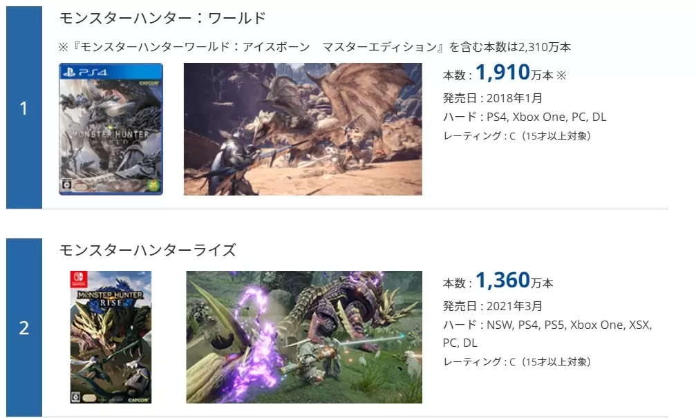 辻本良三更新了系列作銷售數據,顯示《Monster Hunter: World》銷售量已超過 2300 萬套,而《MONSTER HUNTER RISE》也超過1300萬套。此外 9 月《Monster Hunter Now》也已突破 1000 萬下載,他鼓勵還未體驗過《魔物獵人》的玩家嘗試,對今年相關慶祝活動的展表達了期待。