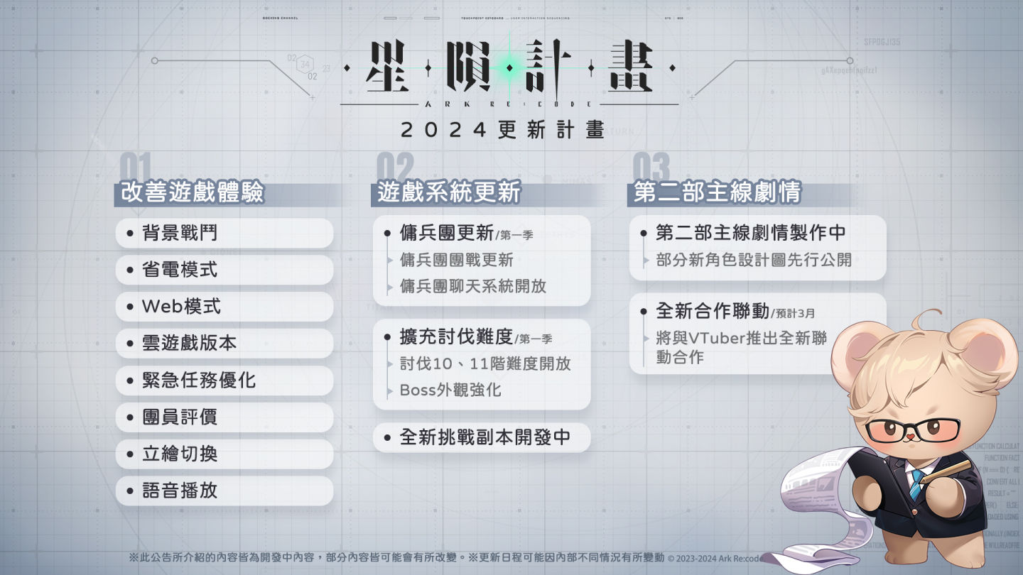 《星隕計畫 Ark Re:Code》與赤鬼伯伯的合作聯動在發布後收穫玩家與粉絲的熱情迴響,對此遊戲團隊表示在 2024 持續進行其他合作聯動的洽談以及安排,並且預告在三月份會與神秘 Vtuber 推出全新的合作聯動企劃,請玩家敬請期待。
